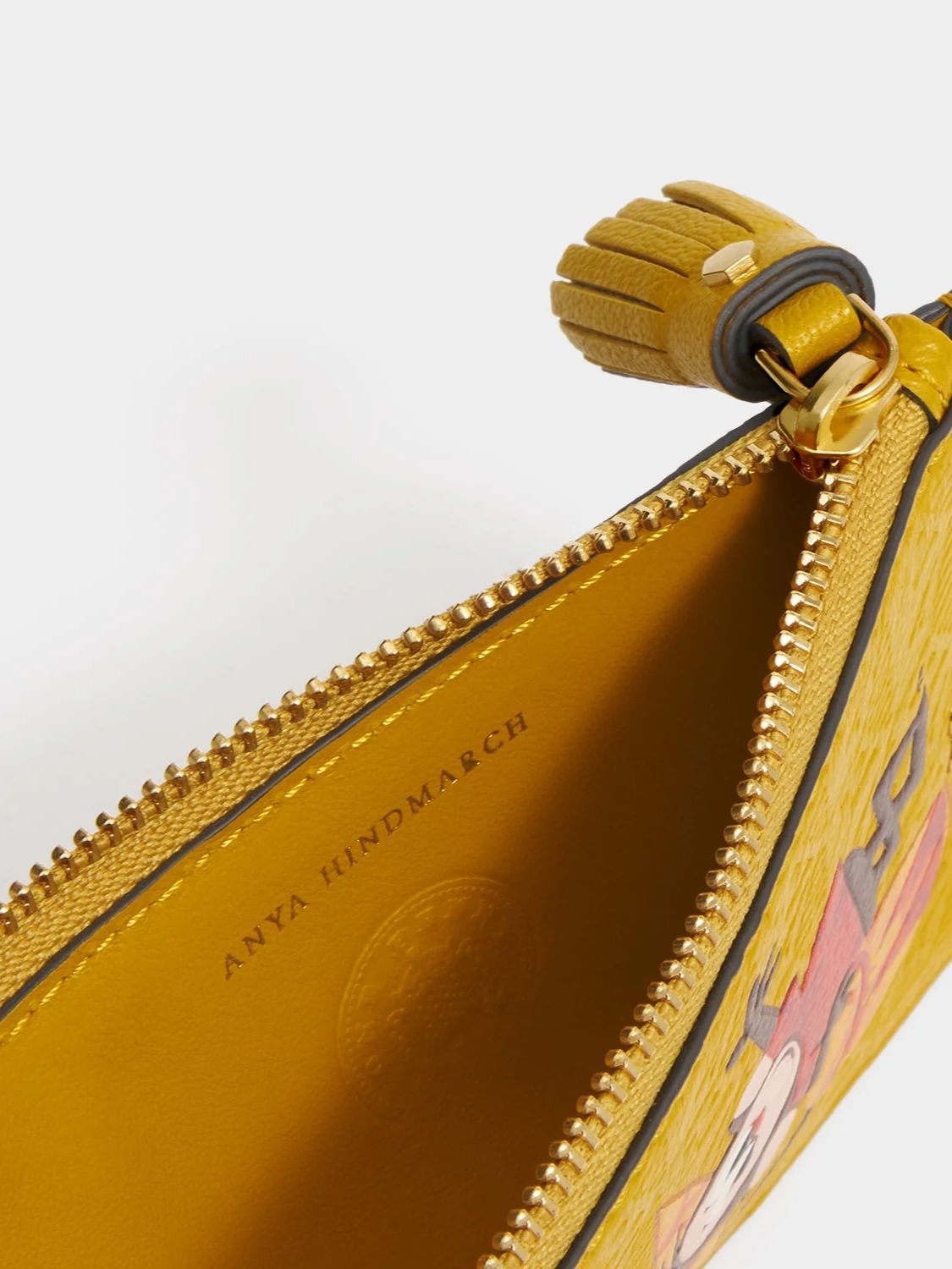 Η Coco Pops Zip Card Case της Anya Hindmarch απογειώνει την έννοια του καθημερινού αξεσουάρ μέσα από το πιο κομψό παιχνίδι νοσταλγίας. Η εμβληματική συσκευασία των Coco Pops της Kellogg's αποτυπώνεται με εντυπωσιακή λεπτομέρεια πάνω σε πολυτελές capra δέρμα σε ζεστή μουσταρδί απόχρωση, δημιουργώντας ένα κομμάτι που ισορροπεί ιδανικά ανάμεσα στο χιούμορ και την υψηλή αισθητική. Το λεπτό του σχήμα κλείνει με φερμουάρ για ασφάλεια, ενώ οι πρακτικές θήκες οργανώνουν κάρτες και κέρματα με απόλυτη φινέτσα.