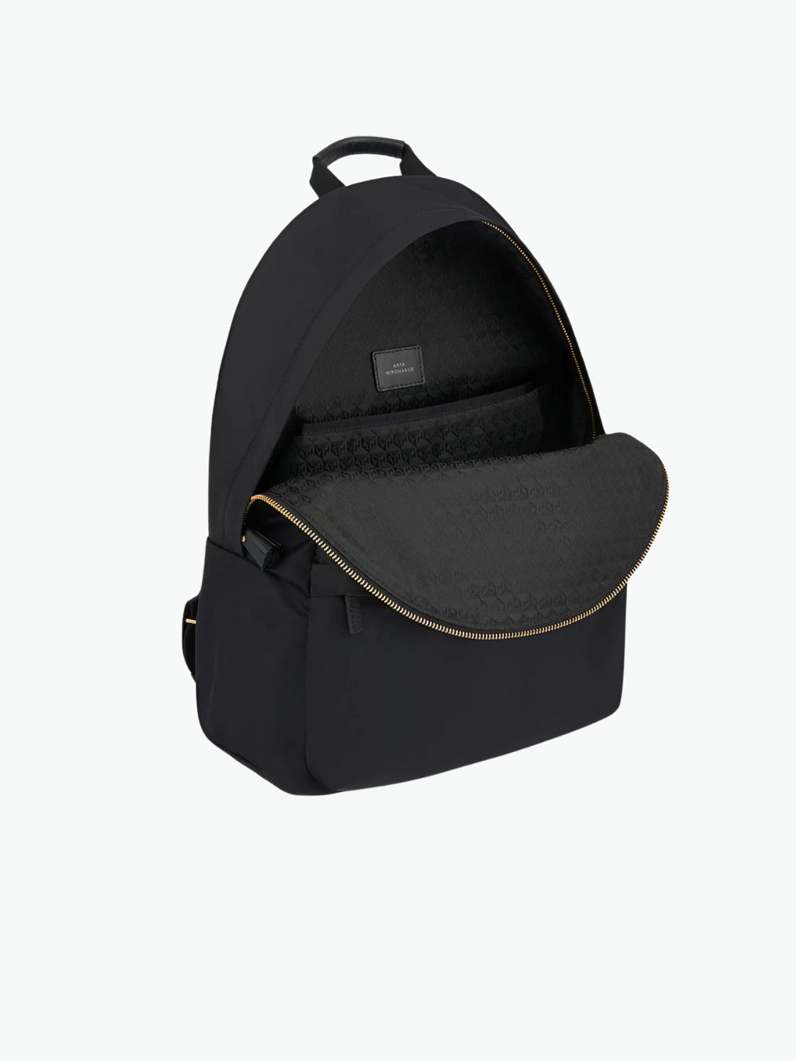 Κατασκευασμένο από ανθεκτικό μαύρο ECONYL, ένα αναγεννημένο νάιλον φιλικό προς το περιβάλλον, με λεπτομέρειες από δέρμα, το σακίδιο διαθέτει χειροποίητα φουντάκια στα φερμουάρ για μια επιπλέον πινελιά πολυτέλειας. Στο εσωτερικό του θα βρεις άφθονο χώρο για τα καθημερινά σου απαραίτητα, καθώς και ειδική θήκη για laptop, που το καθιστά ιδανικό για το γραφείο, τη βόλτα ή το ταξίδι.