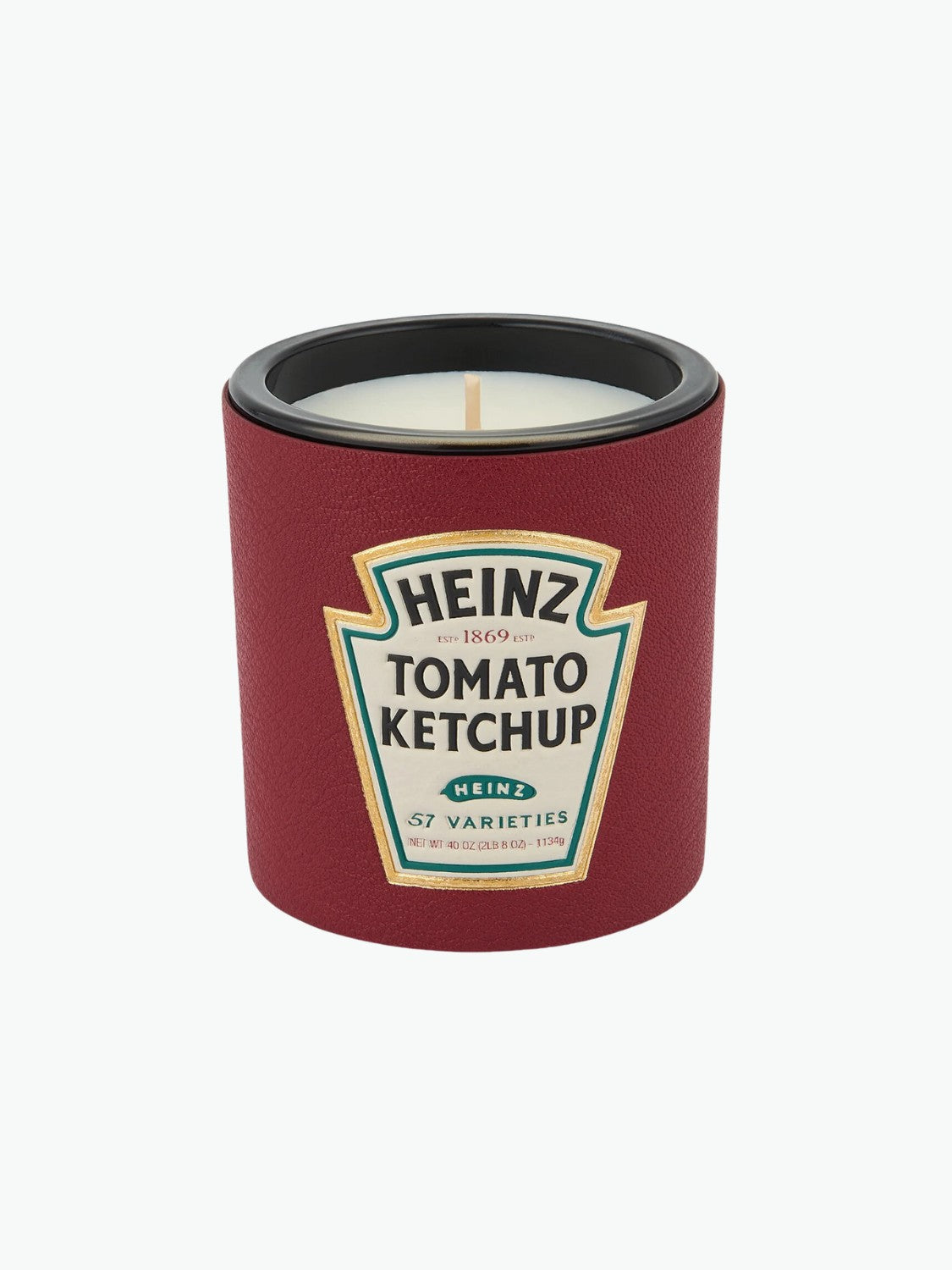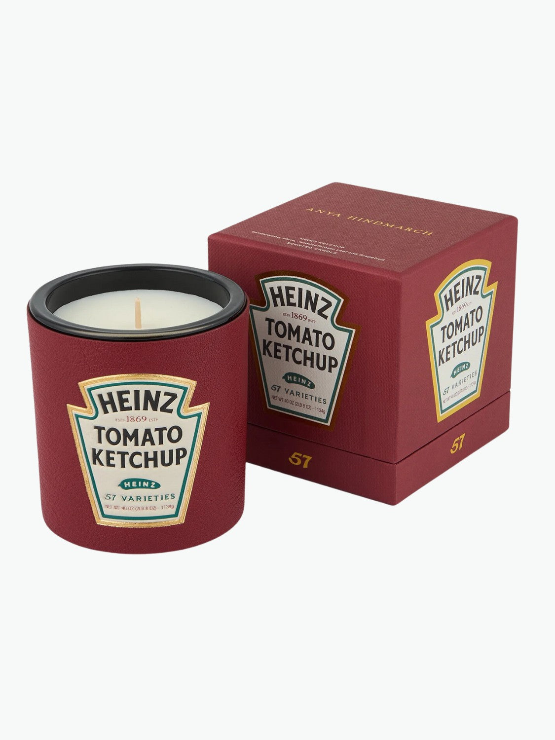 Αν είσαι τόσο φαν της Heinz όσο είμαστε κι εμείς τότε δεν πρέπει να χάσεις το limited edition Heinz Ketchup Candle της Anya Hindmarch. Εμπνευσμένο από το λατρεμένο καρύκευμα της Heinz, το κερί Heinz Ketchup είναι αρωματισμένο με γήινες νότες από φύλλα ντομάτας, βασιλικό, φρέσκο δυόσμο, φρουτώδες φραγκοστάφυλο και μια ιδέα lime. Μια χειροποίητη δερμάτινη θήκη σε σχέδιο Heinz Ketchup περικλείει το γυάλινο δοχείο μετατρέποντας το σε ένα μοναδικό έργο τέχνης που δεν πρέπει να χάσεις. Συνοδεύεται από ταιριαστό κουτί δώρου.