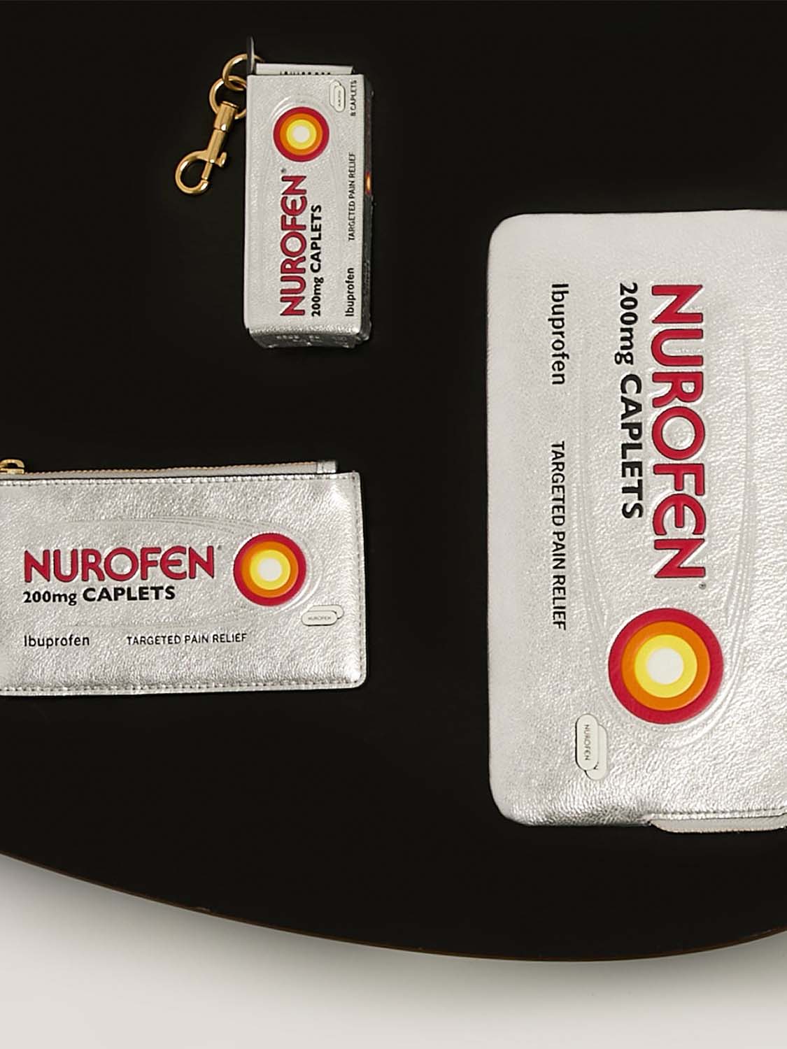 Το limited edition Nurofen Charm της Anya Hindmarch θα κάνει την τσάντα και το σακίδιο σου πιο ιδιαίτερα από ποτέ. Η gold-tone plate αλυσίδα του και ο σχεδιασμός του σε κουτάκι χαπιών Nurofen το μετατρέπουν σε ένα μοναδικό κομμάτι που δεν πρέπει να χάσεις. Η κατασκευή του από δέρμα capra, το κούμπωμα lobster και το μικρό του μέγεθος το καθιστούν τόσο ελαφρύ και ανθεκτικό, ώστε να κοσμεί τα κλειδιά και τις τσάντες σου, χωρίς να τα βαραίνει. Εσύ αλήθεια θυμάσαι να έχεις πάντα μαζί σου τα παυσίπονα σου;