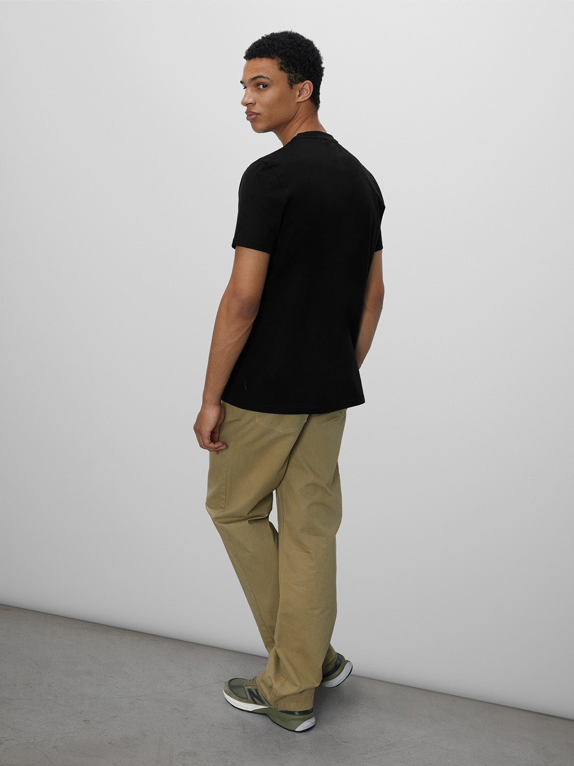 Το Silenzio Short Sleeve T-shirt Black της Aspesi είναι το ιδανικότερο t-shirt για άνοιξη και καλοκαίρι. Χάρις στην σύνθεση του από ελαφρύ βαμβάκι που αναπνέει είναι ιδιαίτερα απαλό, ελαφρύ και άνετο. Η στρογγυλή του λαιμόκομψη και η χαλαρή εφαρμογή του το καθιστούν ιδανικό για layering. Το βαθύ μαύρο χρώμα του το μετατρέπει σε μια πιο safe και κομψή επιλογή που θα ταιριάξει φανταστικά με κάθε σύνολο σου. Και φυσικά το μήνυμα του είναι ξεκάθαρο, "Ησυχία" και γαλήνη, σαν αυτή που θα σου προφέρει όποτε το φοράς.