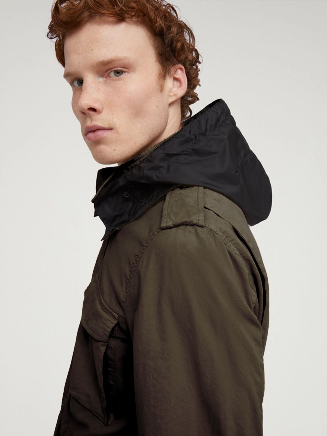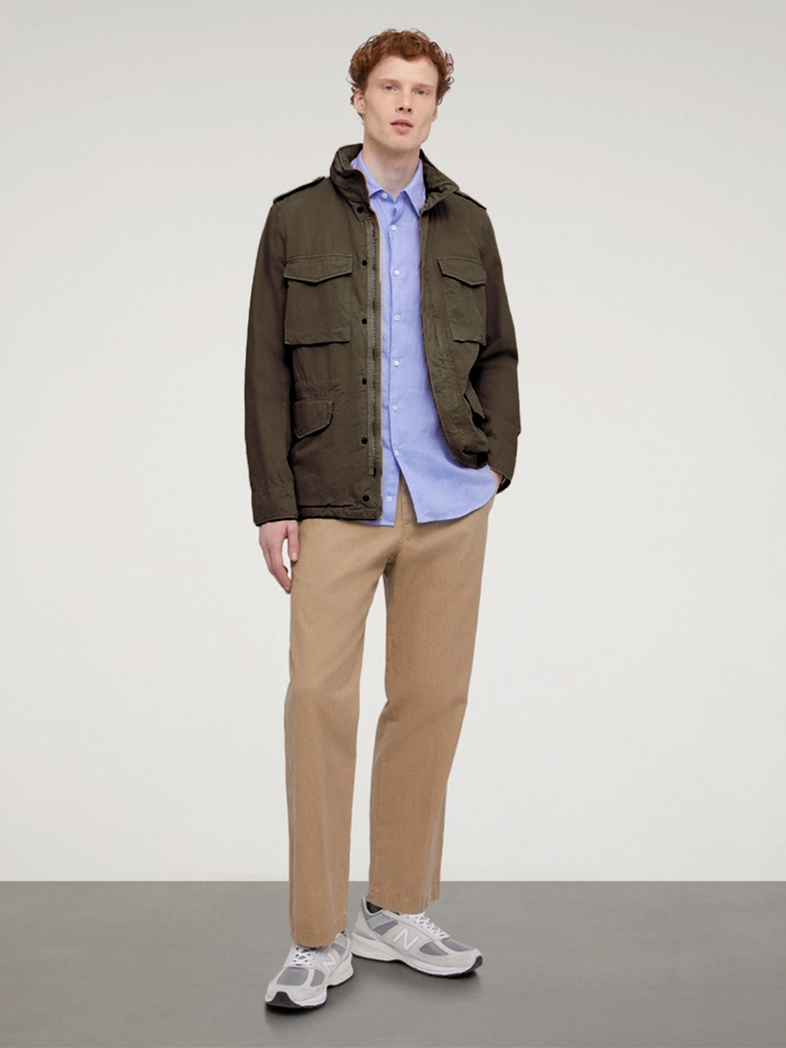 Το Cotton Vento Gabardine Mini Field Jacket Khaki της Aspesi θα γίνει το αγαπημένο σου mid-season jacket. Ο κομψός σχεδιασμός του και το χακί χρώμα του θα χαρίσουν σε όλα τα outfits σου φινέτσα και αρχοντιά χωρίς να σε περιορίσουν. Η σύνθεση του από υψηλής ποιότητας βαμβάκι και τεχνικό νάιλον ταφτά με anti-drip φινίρισμα το κάνουν τόσο άνετο, ελαφρύ και ανθεκτικό, ώστε να το φοράς όλη μέρα. Η ρυθμιζόμενη ελαστική ζώνη σού εξασφαλίζει μία πιο προσαρμοσμένη εφαρμογή. Η πτυσσώμενη κουκούλα του είναι αποσπώμενη για να μην σε περιορίζει. Οι τέσσερες μεγάλες μπροστινές τσέπες του θα χωρέσουν άνετα όλα τα αξεσουάρ σου.
