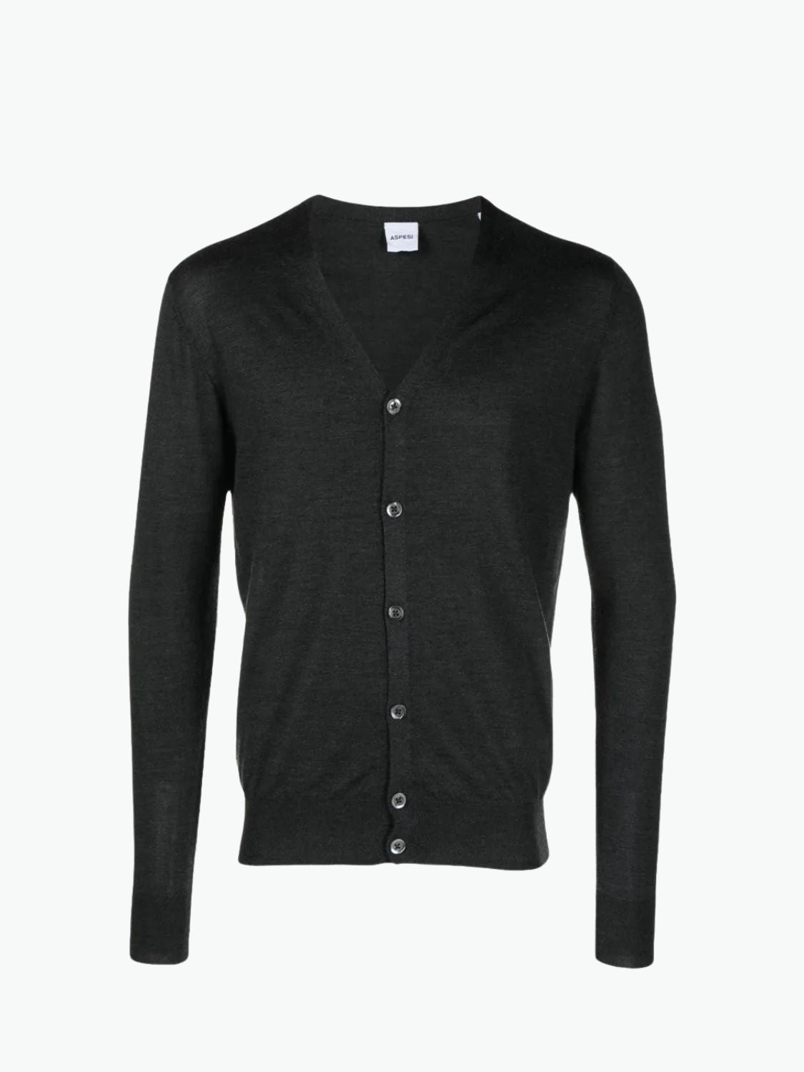 Με την Wool Cardigan Charcoal της Aspesi θα νιώσεις πιο ζεστός και στυλάτος από ποτέ. Η σύνθεση της από φυσικό μαλλί και μετάξι και η πιο αραιή της πλέξη την καθιστούν ιδανική για τους ενδιάμεσους μήνες. Το σκούρο γκρι χρώμα της με τα ιριδίζον κουμπιά θα ταιριάξει φανταστικά με την υπόλοιπη γκαρνταρόμπα σου, χαρίζοντας σε κάθε outfit μια μικρή νότα λάμψης και κομψότητας. Η V της λαιμόκομψη και η regular εφαρμογή της σε κανονική γραμμή την καθιστούν ιδανική για layering.