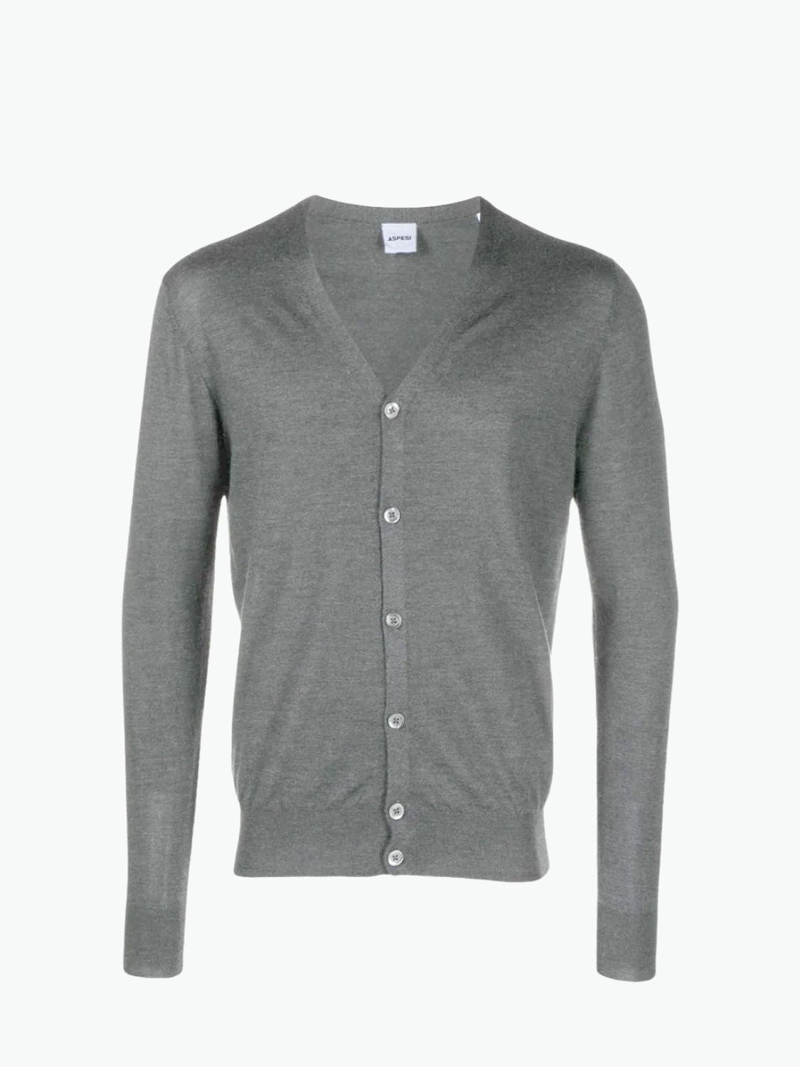 Με την Wool Cardigan Light Grey της Aspesi θα νιώσεις πιο ζεστός και στυλάτος από ποτέ. Η σύνθεση της από φυσικό μαλλί και μετάξι και η πιο αραιή της πλέξη την καθιστούν ιδανική για τους ενδιάμεσους μήνες μετατρέποντας την σε ένα πολύ ευκολοφόρετο και κομψό κομμάτι, κατάλληλο για κάθε περίσταση. Το ανοιχτό γκρι χρώμα της με τα ιριδίζον κουμπιά θα φωτίσει κάθε σκούρο outfit σου χαρίζοντας του μια μικρή νότα λάμψης και κομψότητας. Η V της λαιμόκομψη και η regular εφαρμογή της σε κανονική γραμμή την καθιστούν ιδανική για layering μέσα από κουστούμια.