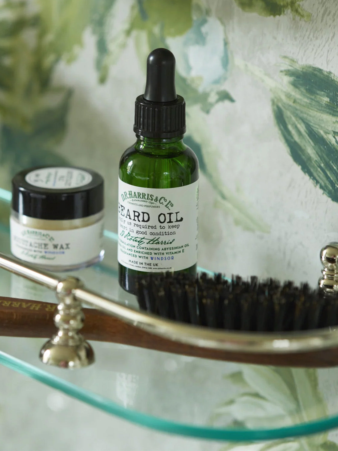 Με το Windsor Beard Oil της D. R. Harris θα αποκτήσεις τη γενειάδα που πάντα ονειρευόσουν. Εμπλουτισμένο με έλαιο Abyssinian, έλαιο Jojoba και βιταμίνη Ε θα θρέψει τις νέες τρίχες σε βάθος διατηρώντας το δέρμα από κάτω σε υγιή κατάσταση. Θα ενδυναμώσει και θα μαλακώσει τα νέα γένια ανακουφίζοντας παράλληλα από τον κνησμό, ειδικά στα πρώτα στάδια ανάπτυξης της γενειάδας. Για μεγαλύτερο έλεγχο στην ανάπτυξη της γενειάδας συνδύασε το με την Boar Bristle Beard Brush. Το φρέσκο άρωμα Windsor, ένα μείγμα εσπεριδοειδών που ωριμάζει σε τόνους μαύρου πιπεριού και Vetyver, θα σε σαγηνεύσει.