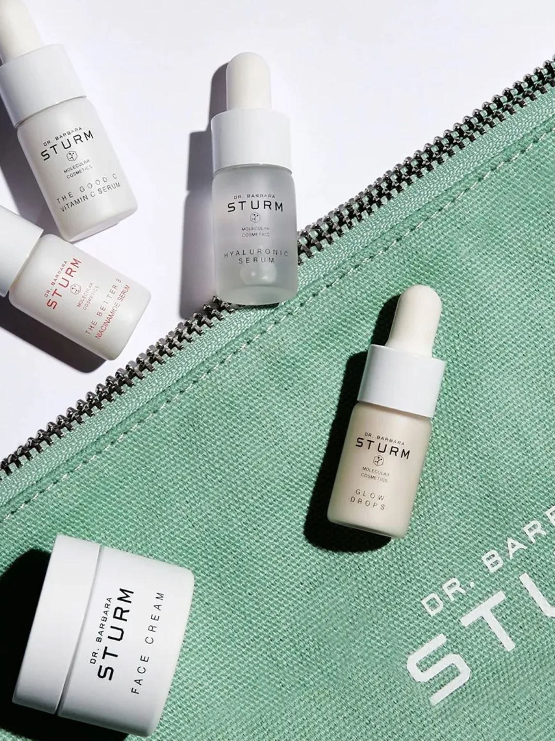 Με το νέο Sturmglow Discovery Size Kit της Dr. Barbara Sturm τώρα μπορείς κι εσύ να δοκιμάσεις τα πιο εξειδικευμένα serums της Dr. Barbara Sturm και να ανακαλύψεις το αγαπημένο σου. Το kit περιέχει πέντε ειδικά προϊόντα λάμψης της Dr. Barbara Sturm σε mini συσκευασίες, ώστε να καλυφθούν όλες οι ανάγκες σου. Πλούσια σε υαλουρονικό οξύ, εκχύλισμα γλιστρίδας, βιταμίνη Ε, βιταμίνη C, αλόη, έλαιο βερίκοκου, βούτυρο καριτέ και έλαιο γλυκό αμυγδάλου θα αφήσουν την επιδερμίδα σου σφριγηλή, τονωμένη και ενυδατωμένη χωρίς έντονες γραμμές, ρυτίδες, εμφανείς πόρους και θαμπάδα. Τι περιμένεις λοιπόν; Χάρισε και εσύ στον εαυτό σου την λάμψη που του αξίζει. Ιδανικό δώρο για κάθε λάτρη του skincare.