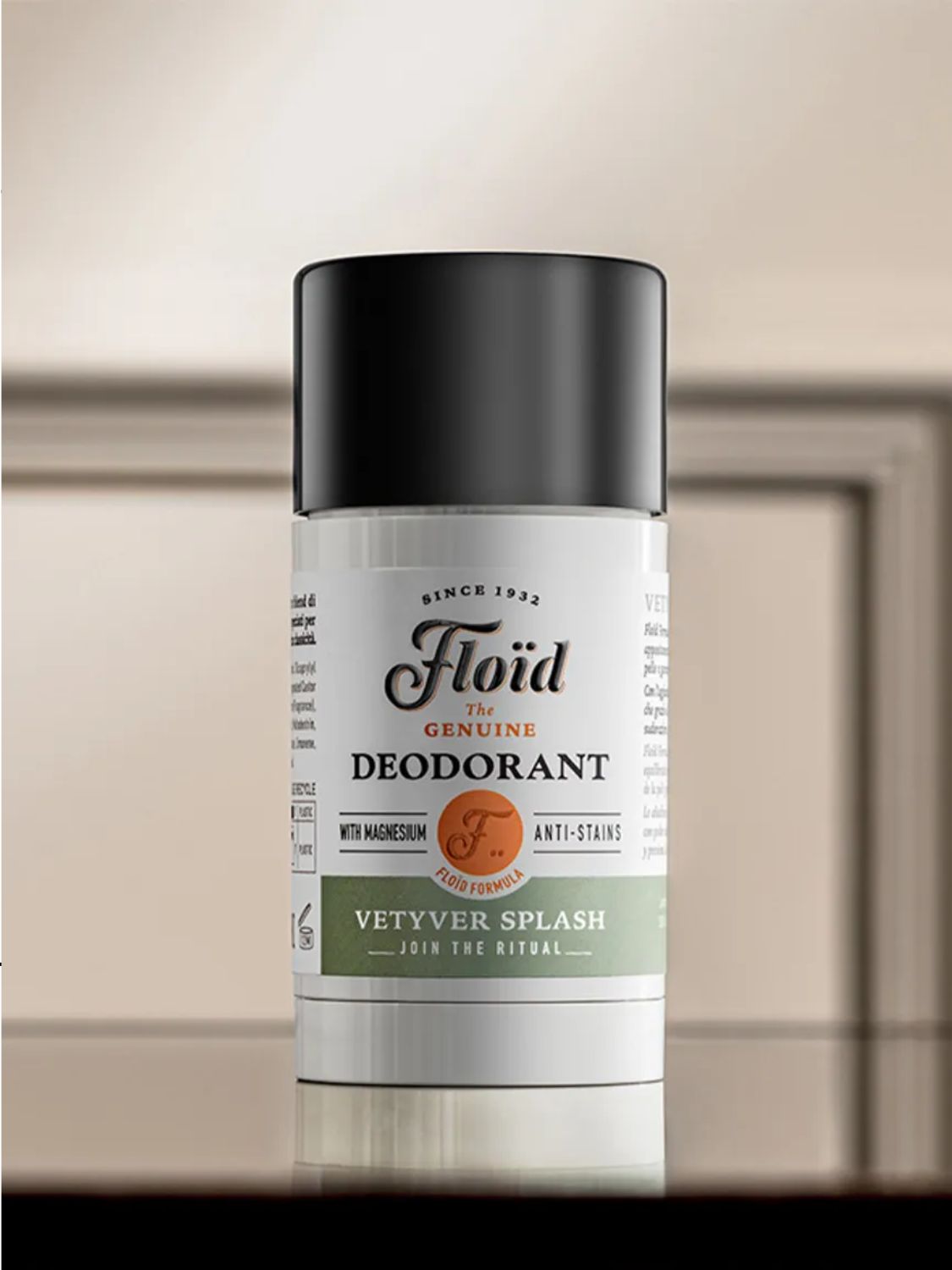 Το Vetyver Splash Anti-Stains Deodorant Stick της Floid θα σε προστατέψει αποτελεσματικά από την κακοσμία και τους αντιαισθητικούς λεκέδες. Πλούσιο σε απορροφητικά άλατα μαγνησίου από τη Νεκρά Θάλασσα και Haugorol είναι φιλικό προς το δέρμα και το φυσικό μικροβίωμα του, ώστε όχι μόνο να μην φράζει τους πόρους, αλλά και να συμβάλλει στην εξισορρόπηση, στην ανάπλαση και στην ενυδάτωση του. Τα άλατα μαγνησίου απορροφούν την υγρασία και θα αφήσουν το δέρμα σου με μια αίσθηση ξηρότητας όλη την ημέρα. Το φανταστικό άρωμα του από vetiver, περγαμόντο, ξύλο κέδρου, guaiac wood και olibanum δημιουργεί ένα τόσο φρέσκο, πράσινο και ξυλώδες άρωμα που θα σε κάνει να περιηγηθείς σε ένα καταπράσινο ανθισμένο δάσος.
