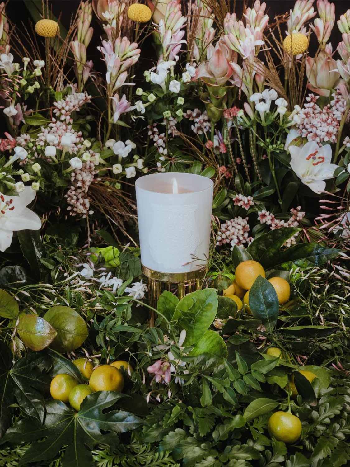 Το Positano Candle είναι το αποτέλεσμα της συνεργασίας της Cire Trudon με τον διακεκριμένο στον χώρο της Haute Couture σχεδιαστή μόδας Giambattista Valli. Πηγή έμπνευσης του Giambattista αποτέλεσε η αγάπη του για το μικρό, ανθισμένο χωριό της Ιταλίας, Positano. Το απολαυστικό αρωματικό προφίλ του κεριού ξεκινά με νότες από περγαμόντο, γαρδένια και μαροκινό νερολί, συνεχίζει με άνθη πορτοκαλιάς, γιασεμί και μανόλια για να καταλήξει στο βάλσαμο Περού, στον κρίνο και στο tuberose. Το εκτυφλωτικά λευκό γυάλινο δοχείο του στολίζεται με ένα κατάλευκο έμβλημα, εμπνευσμένο από ένα ανάγλυφο που βρέθηκε στο παλιό Βασιλικό Κηροποιείο στην Antony, κοντά στο Παρίσι, που ανήκε στην οικογένεια Trudon.