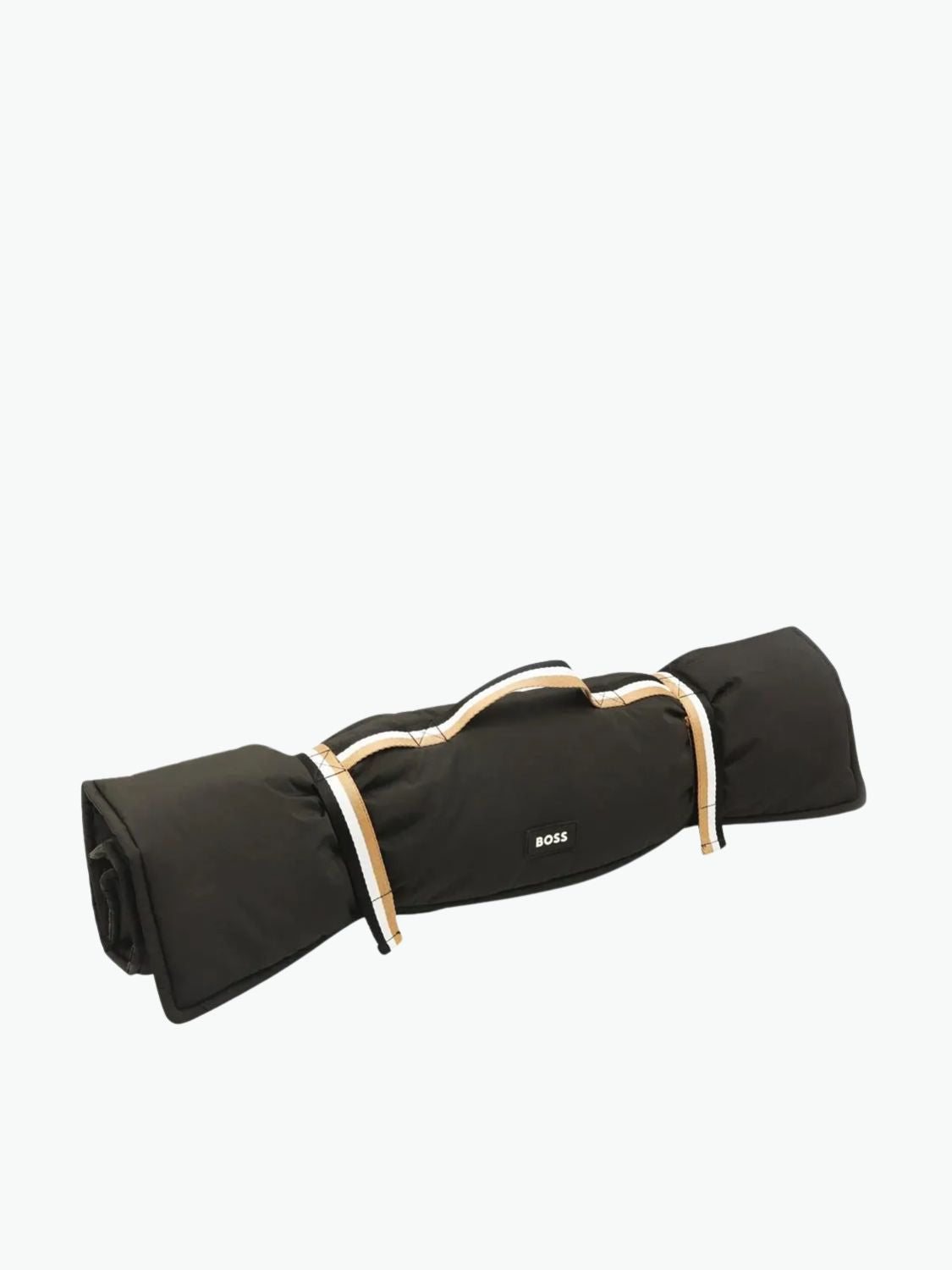 Με το νέο Dog Roll Up Mat Black L της Boss το σκυλάκι σου θα αισθάνεται σαν βασιλιάς όπου κι αν βρίσκεστε. Κατασκευασμένο από πολυεστέρα είναι ιδιαίτερα άνετο, ανθεκτικό και στιβαρό για να μπορεί το σκυλάκι σας να ξαπλώνει άνετα για πολλές ώρες. Με επένδυση από sherpa είναι πολύ μαλακό, άνετο και ζεστό, καθιστώντας το ιδανικό για τους πιο ψυχρούς μήνες. Τυλίγεται σε δευτερόλεπτα, καθαρίζει εύκολα και στεγνώνει γρήγορα. Το μαύρο χρώμα του με τις λευκές και camel λεπτομέρειες του χαρίζει κομψότητα, ώστε να ταιριάξει φανταστικά με τα υπόλοιπα αξεσουάρ σου. Ιδανικό για σκυλάκια μέχρι 15 κιλά.