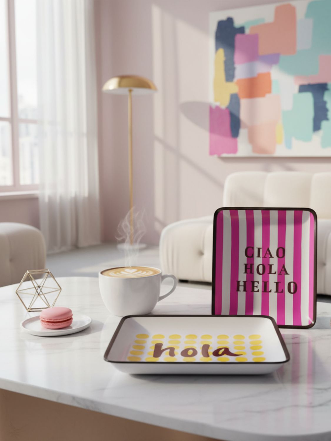 Ο δίσκος Bella Italia της Les Ottomans είναι ζωγραφισμένος στο χέρι και κατασκευασμένος από σίδηρο υψηλής ποιότητας. Πολύχρωμο και πρακτικό, αυτό το vide-poche φέρει τη φράση «Hello» και είναι ιδανικό για να κρατάτε κλειδιά, κέρματα ή μικρά καθημερινά αντικείμενα. Με το παιχνιδιάρικο, χειροποίητο στυλ του, προσθέτει μια πινελιά προσωπικότητας στο σπίτι ή το γραφείο σας. Ένα χρήσιμο αντικείμενο που σίγουρα δεν περνά απαρατήρητο. Δώστε χρώμα και χαρακτήρα με αυτό το έργο τέχνης που αναδεικνύει κάθε χώρο!