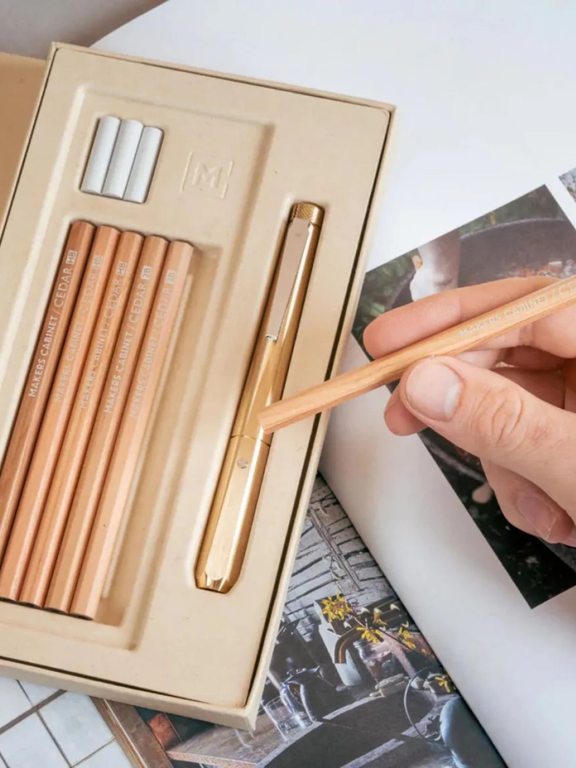 Το Ferrule συνδυάζει τα πιο εξαιδικευμένα χαρακτηριστικά του premium σχεδιασμού ενός στυλό με τη φυσική ομορφιά ενός μολυβιού γραφίτη με ξύλινη θήκη. Η απαράμιλλη ποιότητα των εργαλείων της Makers Cabinet αποδεικνύεται στη γλώσσα μηχανικής και σχεδιασμού της Ferrule. Το Ferrule σάς δίνει τη δυνατότητα να χρησιμοποιείτε τα μολύβια σας μέχρι το τέλος, με άνεση και έλεγχο. Χρησιμοποιήστε το κομψό κλιπ από λυγισμένο χάλυβα της Ferrule για να το στερεώσετε κατά την αποθήκευση ή αφαιρέστε το για μια πιο μινιμαλιστική αισθητική.