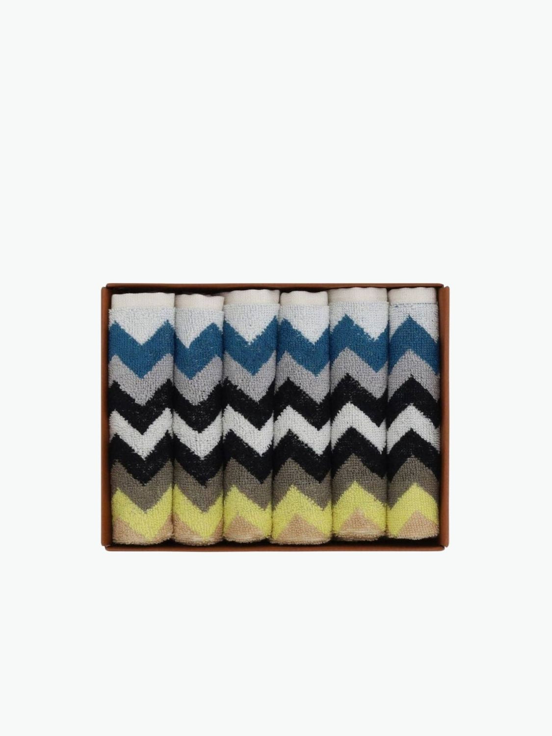 Φέρτε τη χαρακτηριστική ζωντάνια της Missoni Home στο μπάνιο σας με το σετ πετσετών προσώπου Best. Το σετ περιλαμβάνει έξι πετσέτες από 100% βαμβάκι, καθεμία διακοσμημένη με το εμβληματικό ζιγκ-ζαγκ μοτίβο της μάρκας σε έντονες μπλε και κίτρινες αποχρώσεις. Μαλακές, απορροφητικές, προσφέρουν μια καθημερινή εμπειρία φροντίδας με ιταλική φινέτσα.