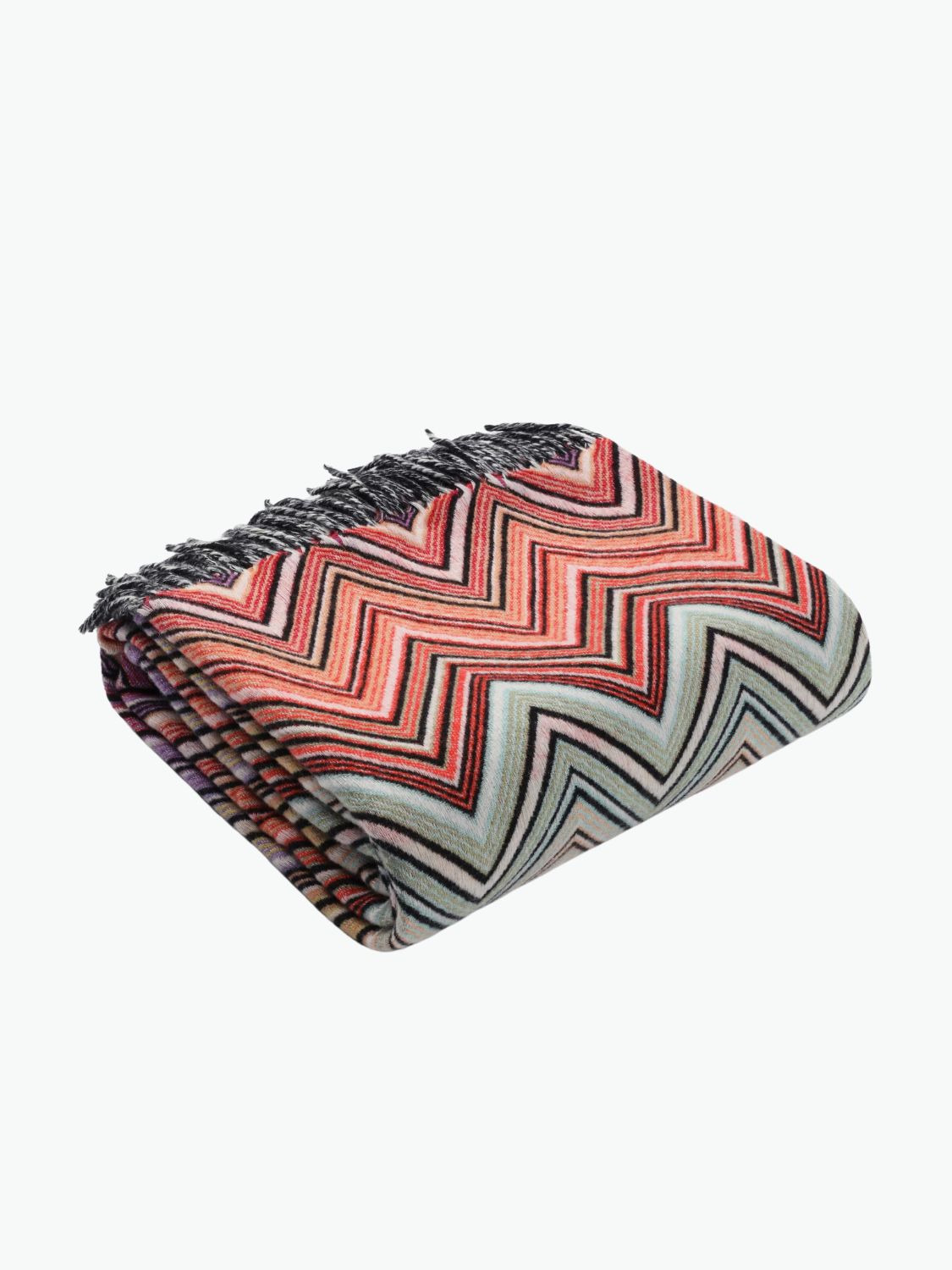 Το Perseo Multicoloured Throw της Missoni θα ομορφύνει μονομιάς τον καναπέ και το κρεβάτι σου. Η σύνθεση του από μαλλί και κασμίρ το καθιστά τόσο απαλό, και ελαφρύ που δεν θα θες να το αφήσεις από τα χέρια σου. Οι κίτρινες, πορτοκαλί, γαλάζιες, πράσινες, μωβ και σομόν αποχρώσεις του σε chevron σχέδιο και τα παιχνιδιάρικα κρόσια του θα γεμίσουν το σαλόνι και το υπνοδωμάτιο σου με την γαλήνη, τα χρώματα και τη μαγεία του ηλιοβασιλέματος. Ένα τέτοιο στολίδι δεν πρέπει να λείπει από τη διακόσμηση σου.