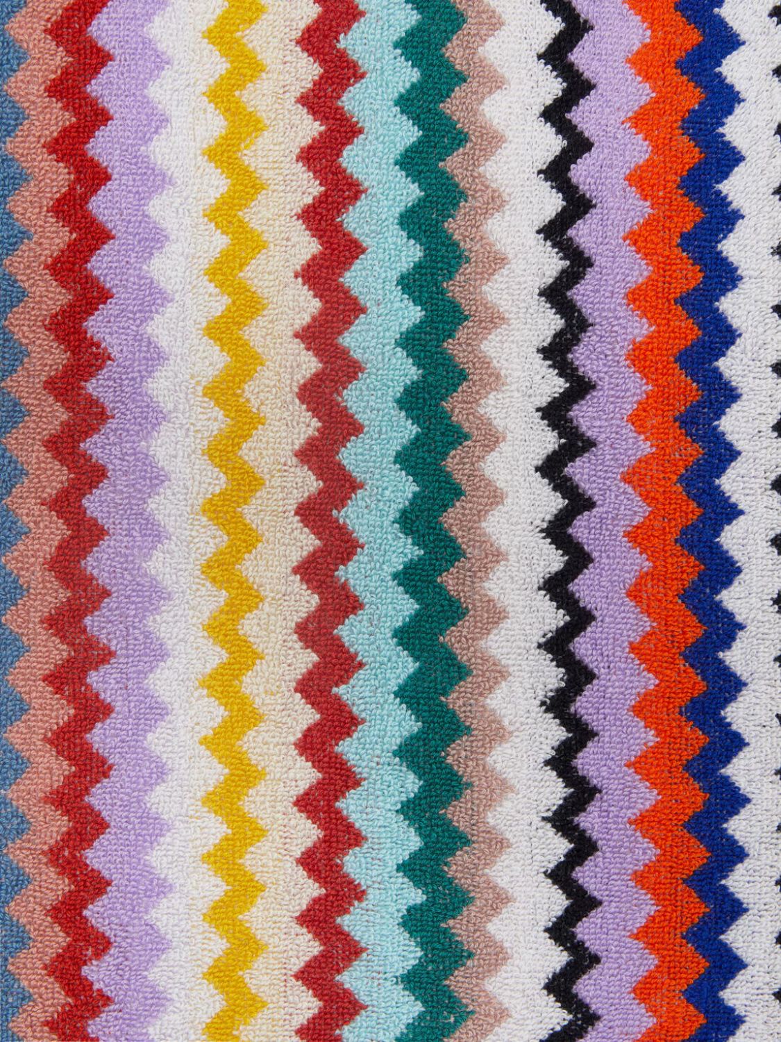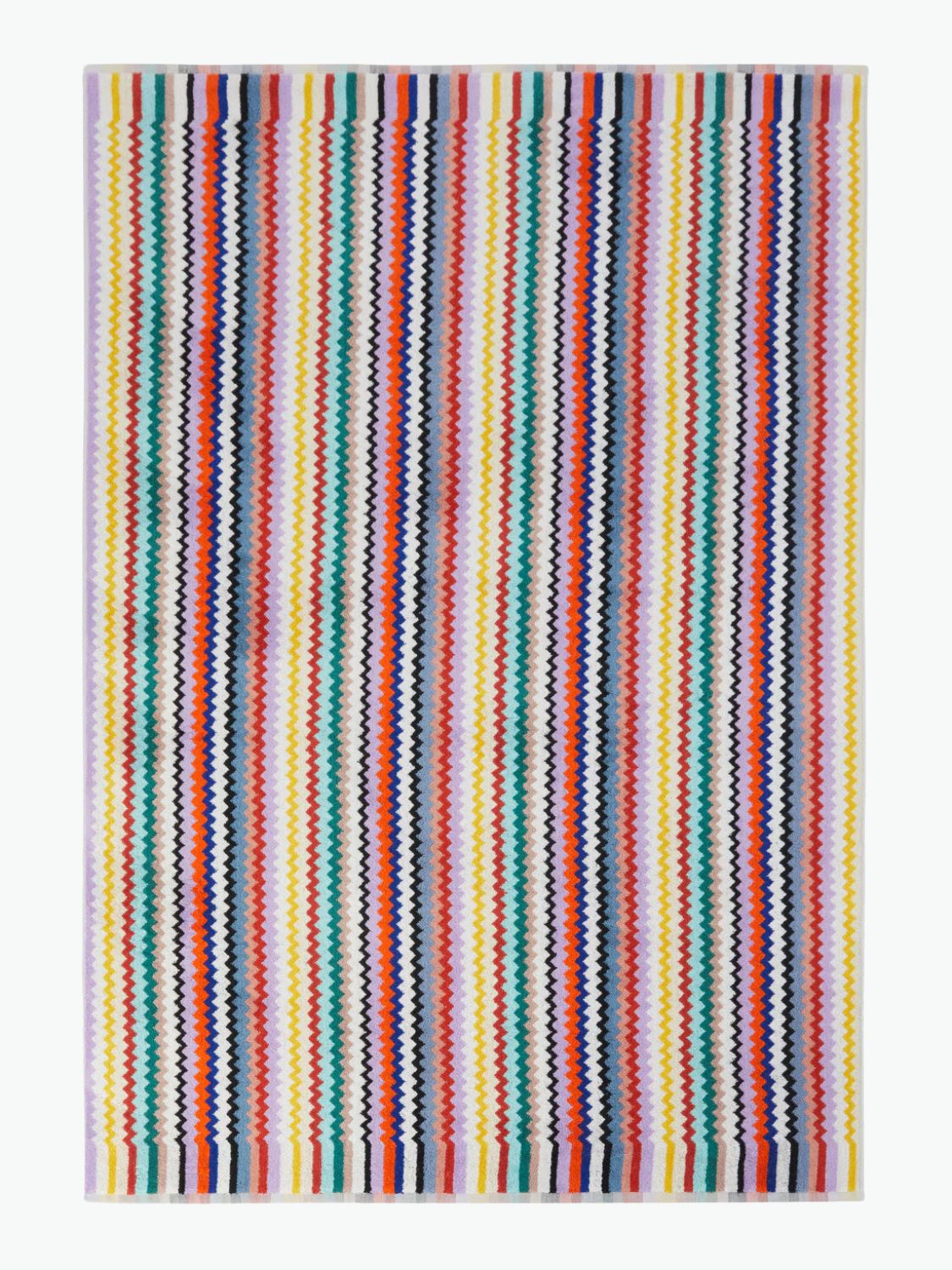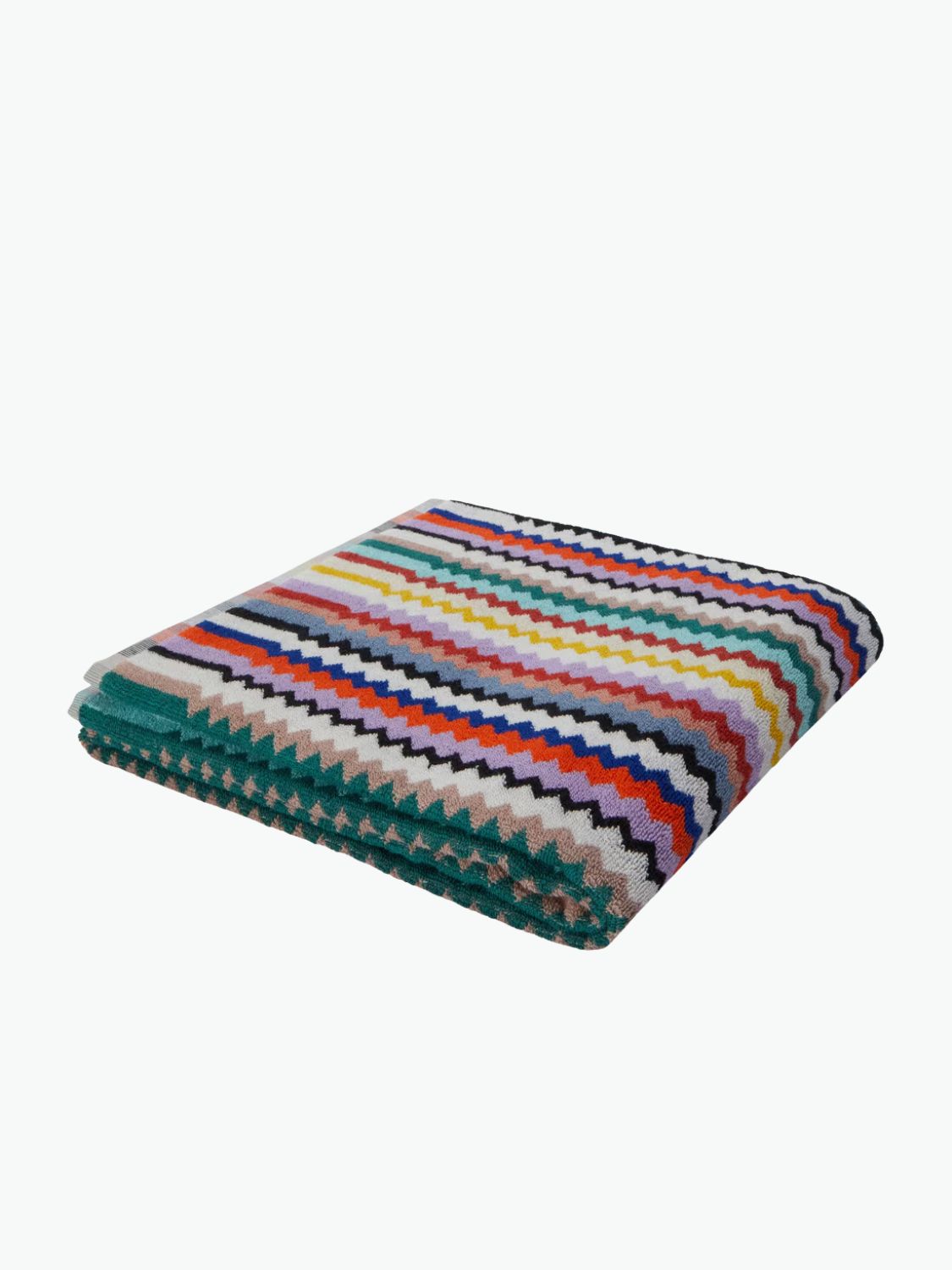 Από το 1953, η Missoni έχει ξεχωρίσει για τα πλεκτά της, διακοσμημένα με μοναδικά ζιγκ-ζαγκ μοτίβα, ρίγες, κυματισμούς και νήματα slub. Επεκτείνοντας τη γκάμα της σε προϊόντα lifestyle ενσωματώνει αρμονικά αυτά τα εμβληματικά μοτίβα και θέματα σε εσωτερικούς και εξωτερικούς χώρους. Αυτό το κομμάτι από βαμβακερό terry velour διαθέτει ένα ζωντανό πολύχρωμο ζιγκ-ζαγκ μοτίβο, χαρακτηριστικό του στυλ της Missoni, και μπορεί να συνδυαστεί με άλλα αντικείμενα της συλλογής Missoni Home.