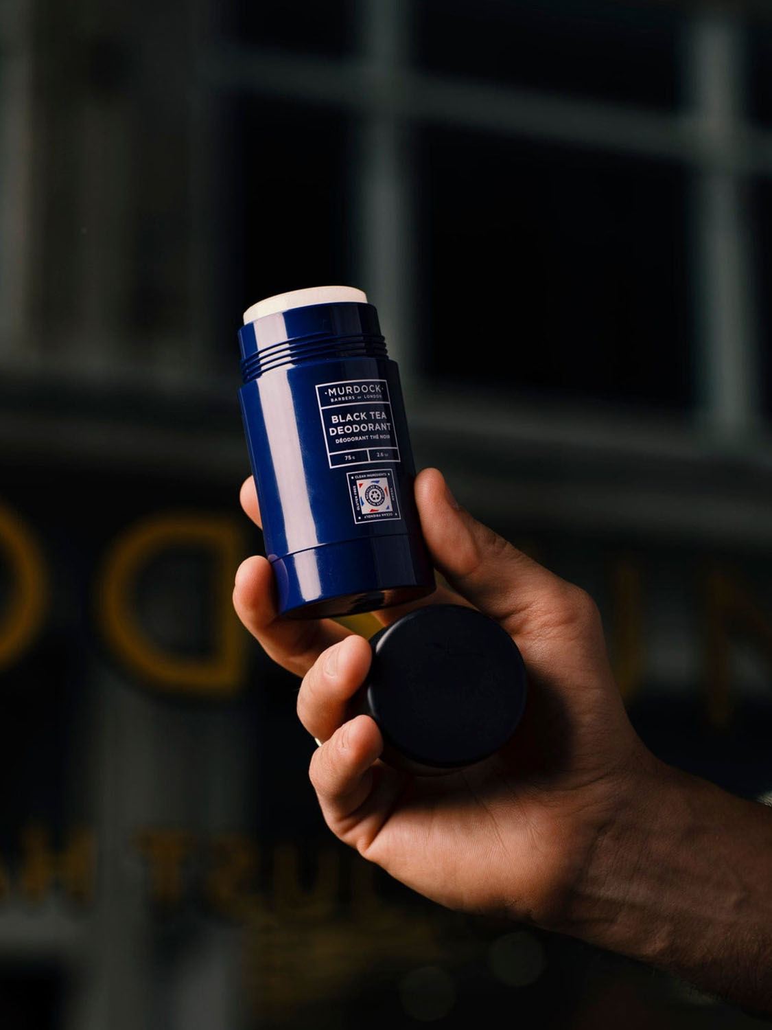 Με το Stick Deodorant Black Tea της Murdock London θα είσαι όλη ημέρα φρέσκος και μυρωδάτος. Παρασκευασμένο με πλούσια φυσικά συστατικά θα θρέψει, θα φροντίσει και θα ενυδατώσει το ευαίσθητο δέρμα της μασχάλης σε βάθος. Πλούσιο σε ξύλο κέδρου, πατσουλί και λεμόνι θα εξουδετερώσει την δυσωσμία. Δεν περιέχει αλουμίνιο, ώστε να μην προκαλεί ερεθισμούς. Το διακριτικό άρωμα του μαύρου τσαγιού θα σε συναρπάσει.
