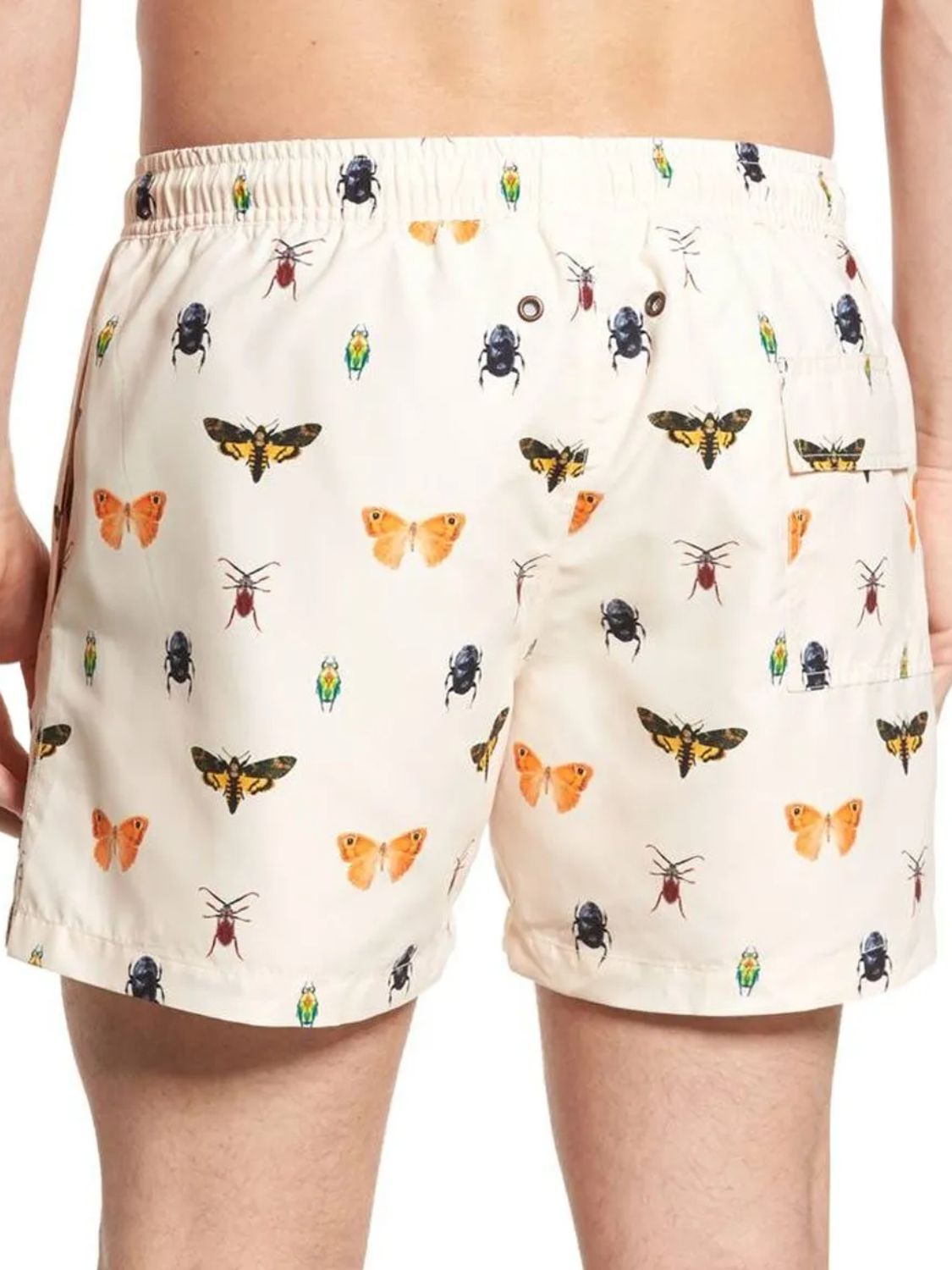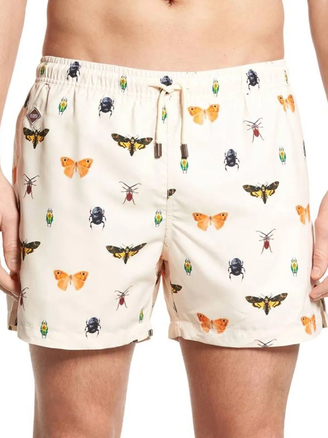 Ένα πιο ρομαντικό μαγιό για μία πιο ρομαντική αισθητική. Το ανοιχτό μπεζ χρώμα του με τα πολύχρωμα ξεθωριασμένα έντομα θα αναδείξει την πιο ρετρό αισθητική σου και τη πιο ρομαντική πλευρά σου. Χάρις στο fast drying υλικό του μπορείς να πεταχτείς για μία γρήγορη βουτιά όπου κι αν βρίσκεσαι. Σε mid-length μήκος και κανονική γραμμή για να το νιώθεις άνετο όλη μέρα. Με τρεις τσέπες, δύο πλαϊνές μπροστά και μία πίσω με κούμπωμα, ώστε να έχεις πάντα μαζί σου όλα όσα χρειάζεσαι.