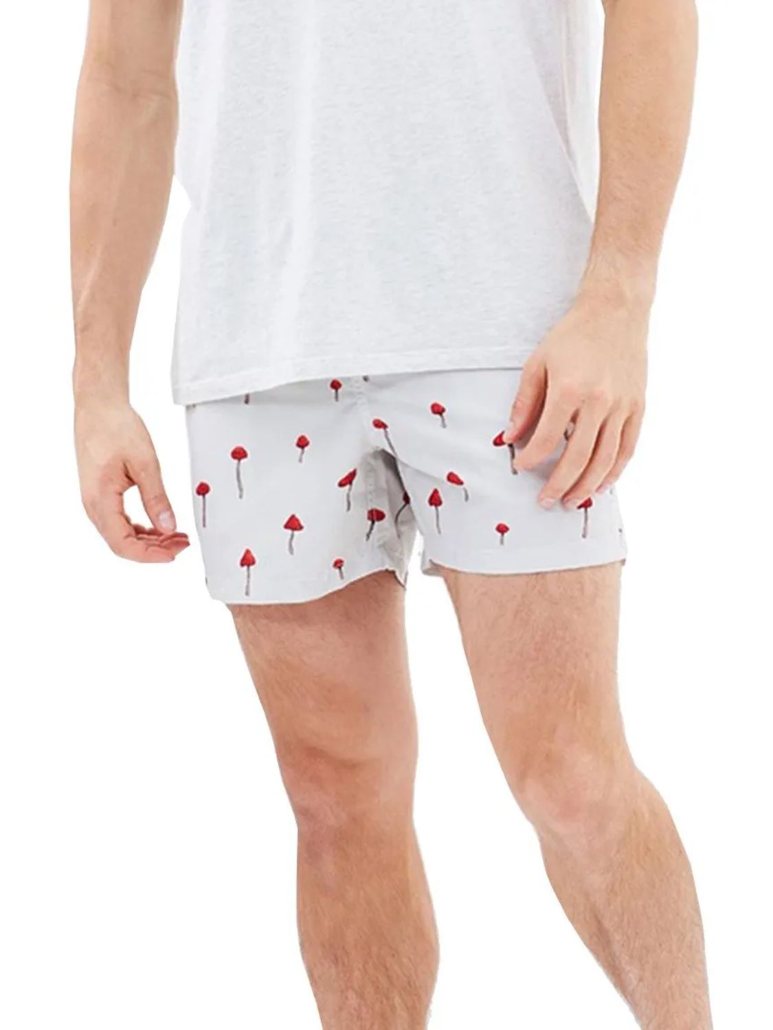 Το παιχνιδιάρικο μοτίβο του με τα μανιτάρια θα σου ανεβάσει κατευθείαν τη διάθεση. Το άσπρο χρώμα του το κάνει αρκετά tone down, ώστε να μπορείς να το συνδυάσεις εύκολα ακόμα και με τα πιο πολύχρωμα σου t-shirts. Είναι σε κανονική γραμμή και mid-length μήκος, ώστε να μπορείς να το φοράς άνετα από την παραλία μέχρι το beach bar. Το fast drying υλικό του σου δίνει τη δυνατότητα να πεταχτείς για μία γρήγορη βουτιά κάθε στιγμή. Οι τρεις τσέπες του, δύο πλαϊνές μπροστά και μία πίσω με κούμπωμα, θα χωρέσουν εύκολα όλα τα αξεσουάρ σου.