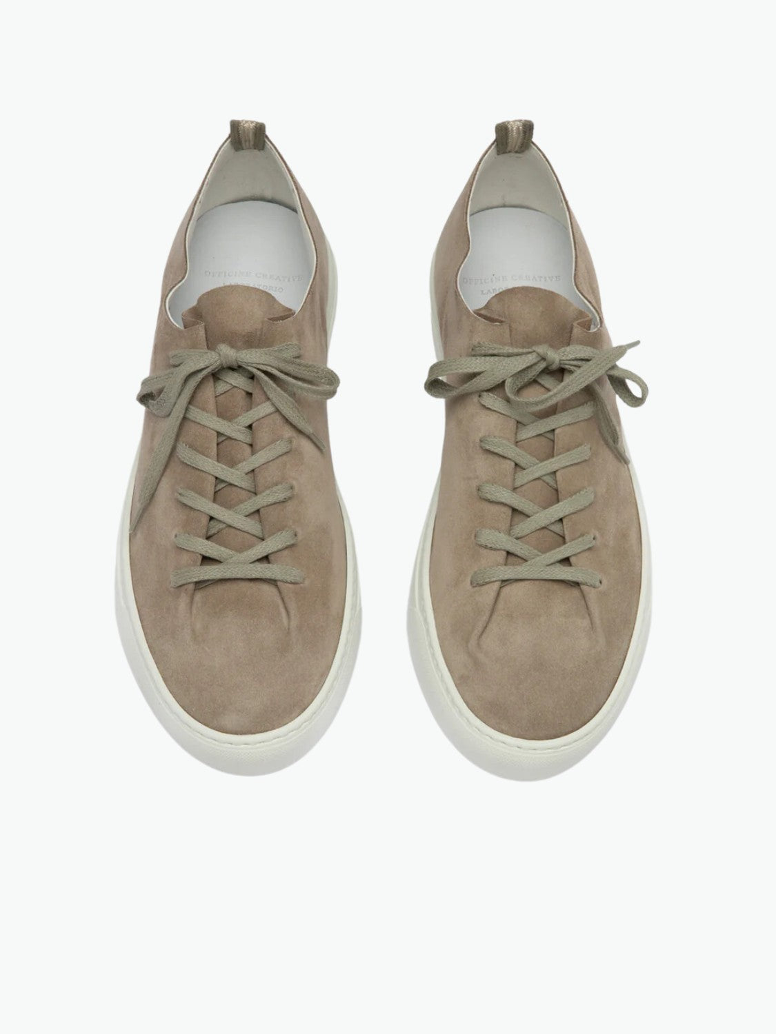 Τα μοναδικά Taupe Suede Low Top Sneakers της Officine Creative αποκαλύπτουν μια διαχρονική και εκλεπτυσμένη σιλουέτα, η οποία τονίζεται από άψογες χειροποίητες λεπτομέρειες. Όντας κατασκευασμένα από ένα ενιαίο κομμάτι μαλακού suede και καουτσούκ υψηλής ποιότητας είναι τόσο μαλακά, ελαφριά και ανθεκτικά που θα θες να τα φοράς όλη μέρα. Το γκρικαφέ χρώμα τους και ο λιτός, μινιμαλιστικός σχεδιασμός τους θα ταιριάξει μοναδικά με κάθε σου outfit.
