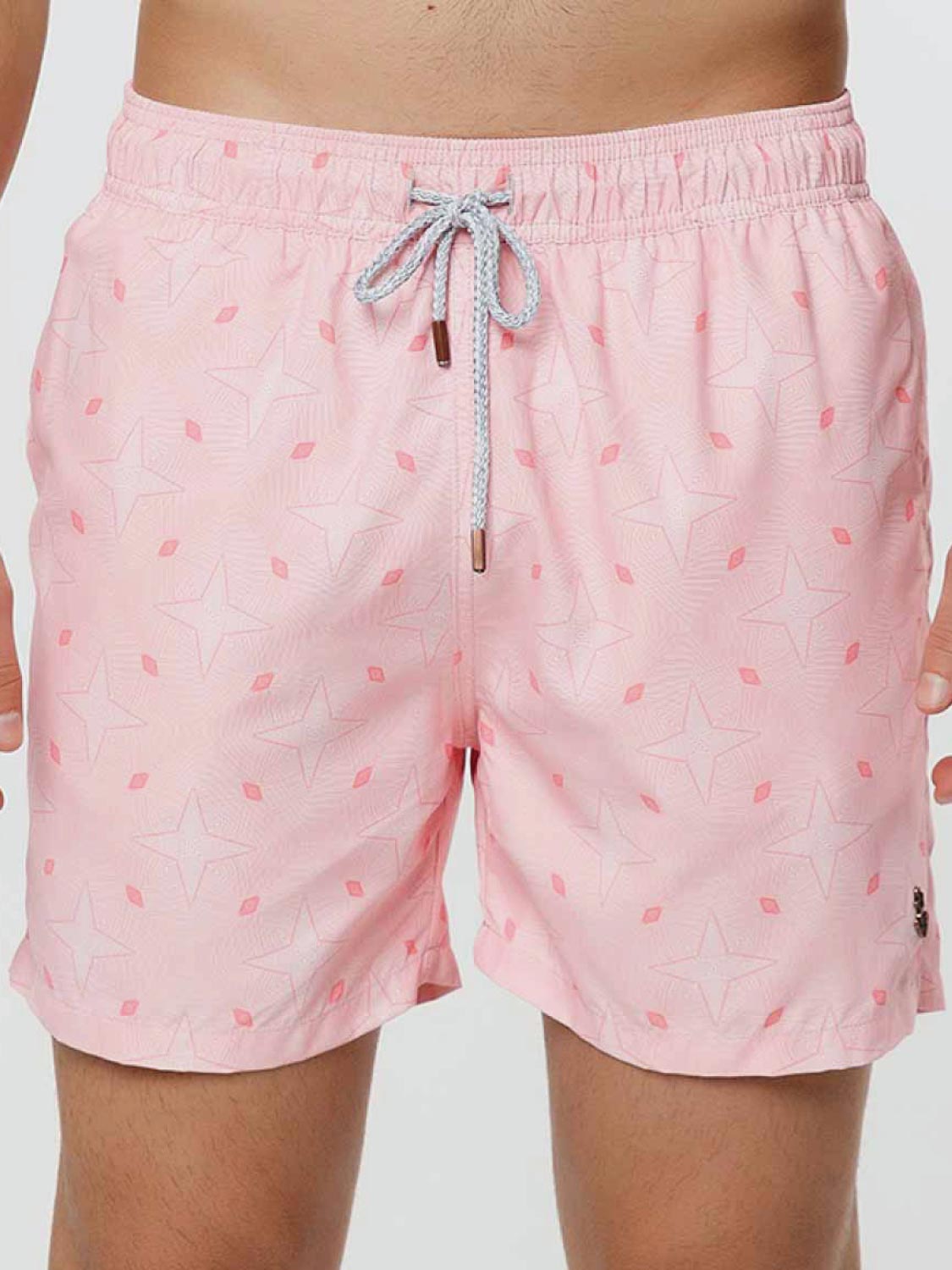 Το ανοιχτό ροζ του χρώμα θα κολακεύσει φανταστικά το μαύρισμα σου, ενώ τα διακριτικά ροζ αστεράκια που το κοσμούν θα σου χαρίσουν μία πιο παιχνιδιάρικη διάθεση. Σε κανονική γραμμή με mid-length μήκος για να τα φοράς όλη μέρα. Η πίσω τσέπη του διαθέτει κούμπωμα, καθιστώντας το ιδανικό για κοντινές αποστάσεις που πρέπει να έχεις μαζί σου μόνο τα απολύτως απαραίτητα.