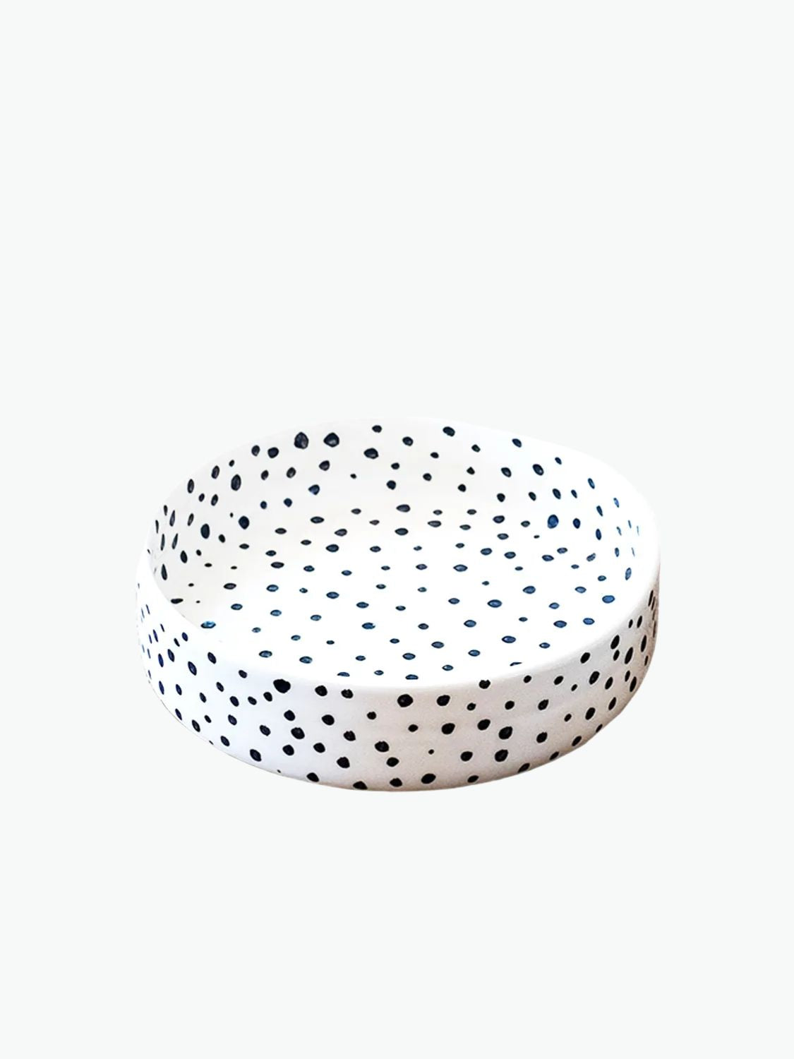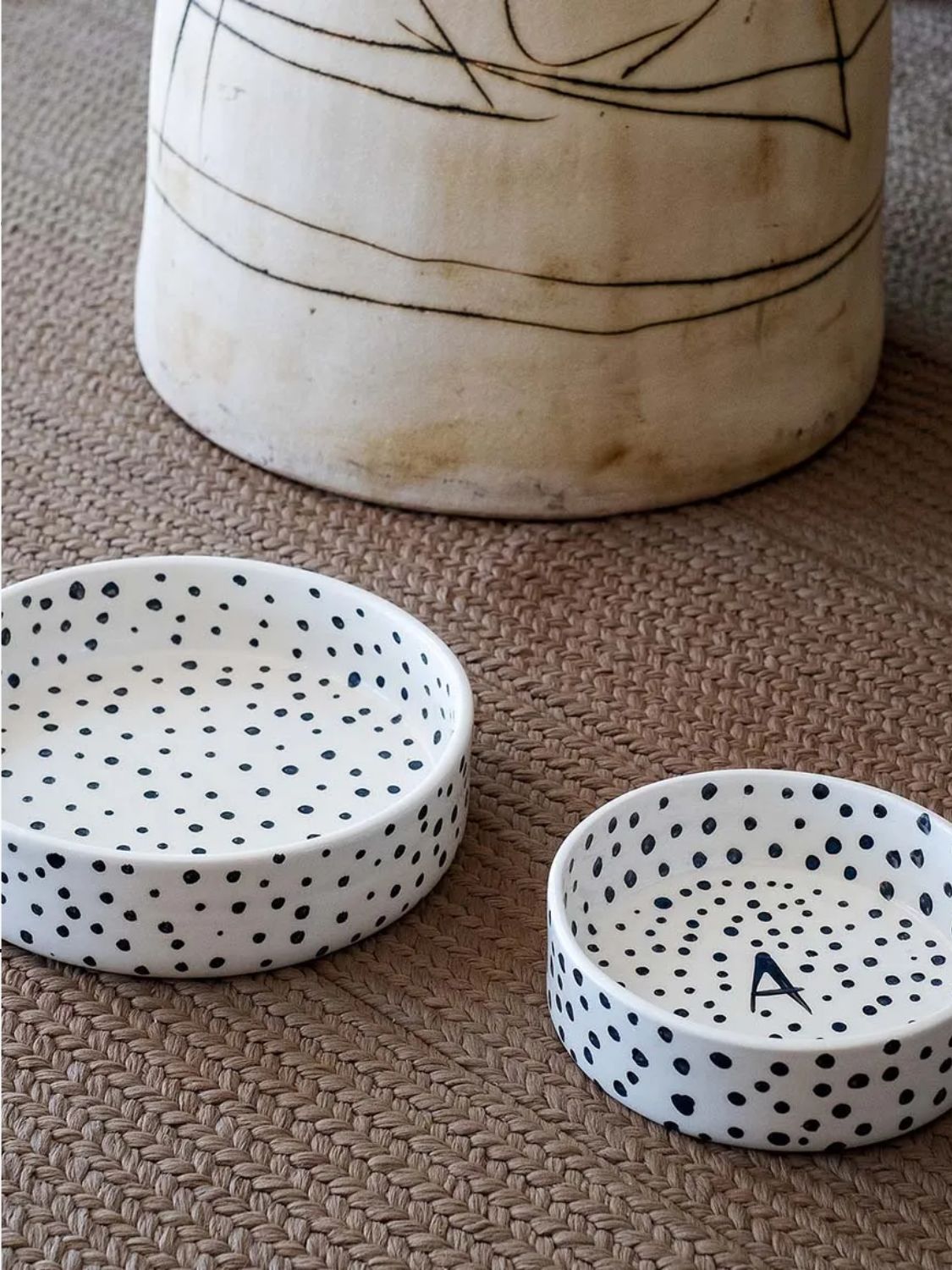 Το Ceramic Dog Bowl Black Spots Medium της Rhea Kalo θα ομορφύνει την κουζίνα και τη ζωή σου. Κατασκευασμένο από glazed κεραμικό υλικό υψηλής ποιότητας είναι απολύτως ασφαλές για το σκυλάκι σου και ιδιαίτερα βαρύ και ανθεκτικό, ώστε να μπορείς να το τοποθετήσεις οπουδήποτε. Το διακριτικό αλλά fun σχέδιο του με τις μαύρες βούλες σε λευκό φόντο θα ταιριάξει φανταστικά με τη διακόσμηση. Το πιο μικρό μέγεθος του το καθιστά ιδανικό για μικρά έως μεσαίου μεγέθους σκυλάκια.