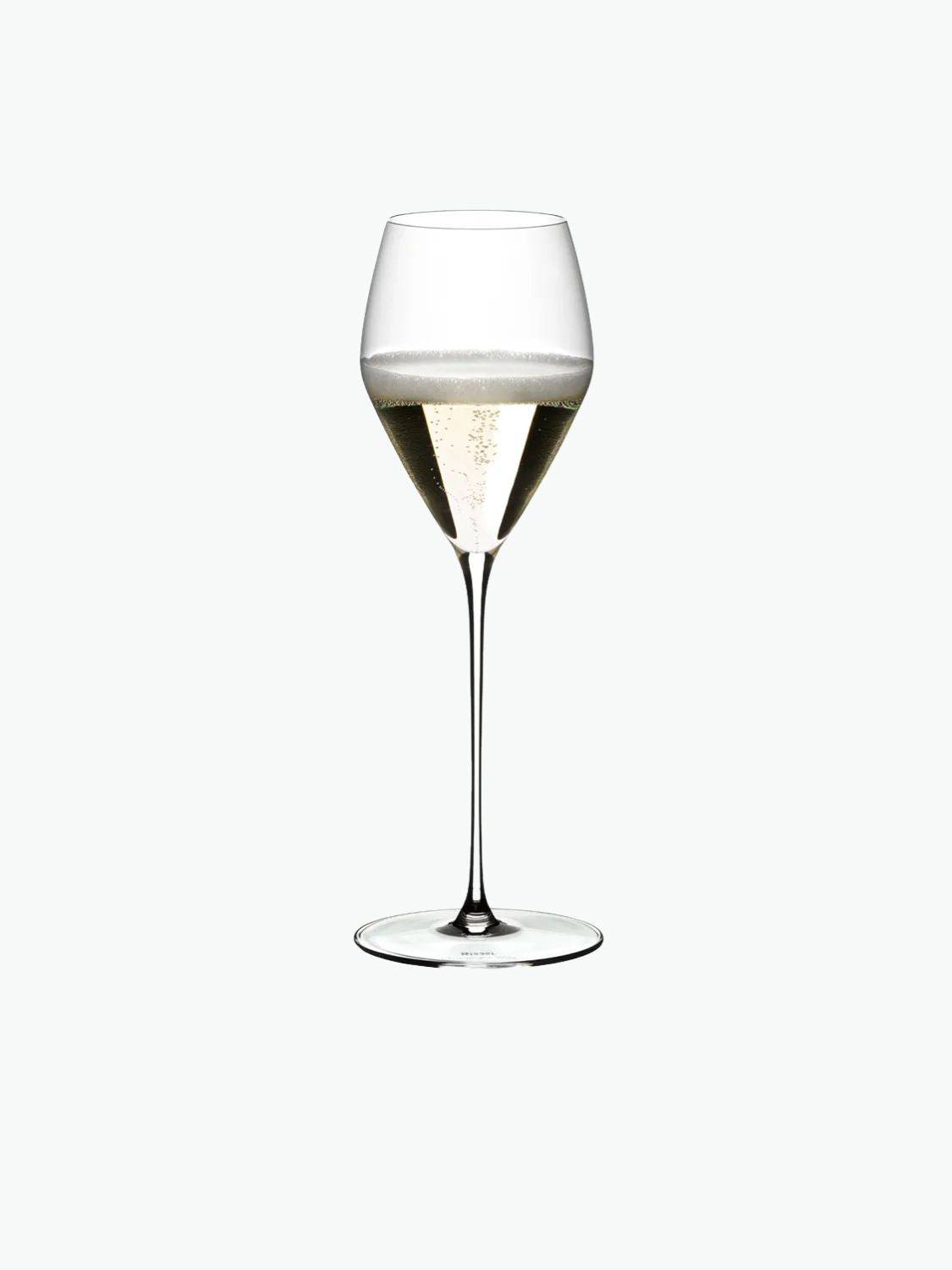 Το Veloce Champagne Wine Glass της Riedel θα αλλάξει τον τρόπο που πίνεις το κρασί και την σαμπάνια σου. Το σχήμα διαμαντιού επιτρέπει στο ευρύ φάσμα των αρωμάτων να ξεδιπλωθεί καλύτερα, χάρις στις γωνίες του που προσφέρουν περισσότερο χώρο για την ανάπτυξη των αρωμάτων. Παράλληλα το ευρύτερο μπολ επιτρέπει στα πολύπλοκα στρώματα της σαμπάνιας να αναπτυχθούν και να ενταθούν, ενώ η μεγαλύτερη διάμετρος του χείλους επιτρέπει την μεγαλύτερη απελευθέρωσή τους. Περιλαμβάνει επίσης ένα «αφρώδες σημείο» που βοηθά στο σχηματισμό των φυσαλίδων της σαμπάνιας. Χάρις στην κατασκευή του από διαφανές κρυστάλλινο γυαλί είναι ιδανικό για ελαφριές, φρέσκες, ξηρές σαμπάνιες, proseccos και αφρώδεις οίνους.