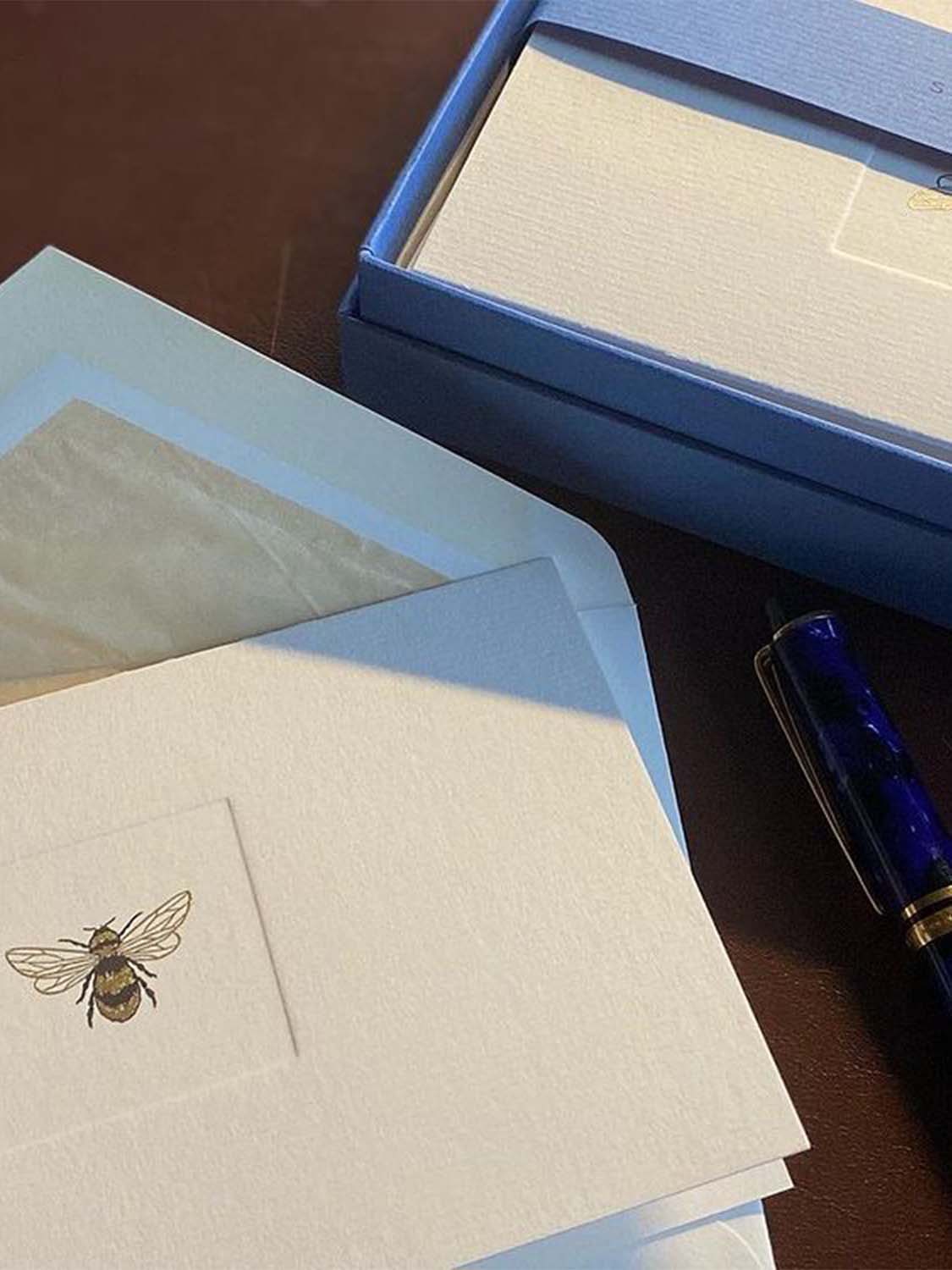 Σε οποιαδήποτε περίσταση, στείλτε τις ευχές σας με μια κάρτα Smythson. Περιηγηθείτε στη συλλογή με τις μοναδικά όμορφες handcrafted κάρτες και προσκλήσεις της Smythson. Φτιαγμένες από το καλύτερο χαρτί και κατασκευασμένες στην Αγγλία, οι καταπληκτικές notelets της Smythson θα φέρουν μια προσωπική πινελιά στο stationery ρεπερτόριο σας.
