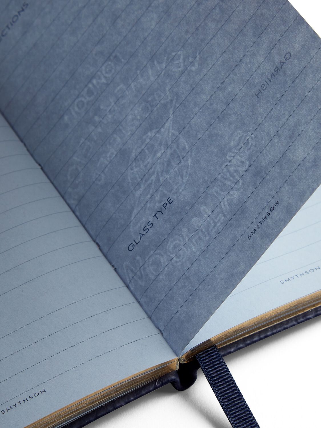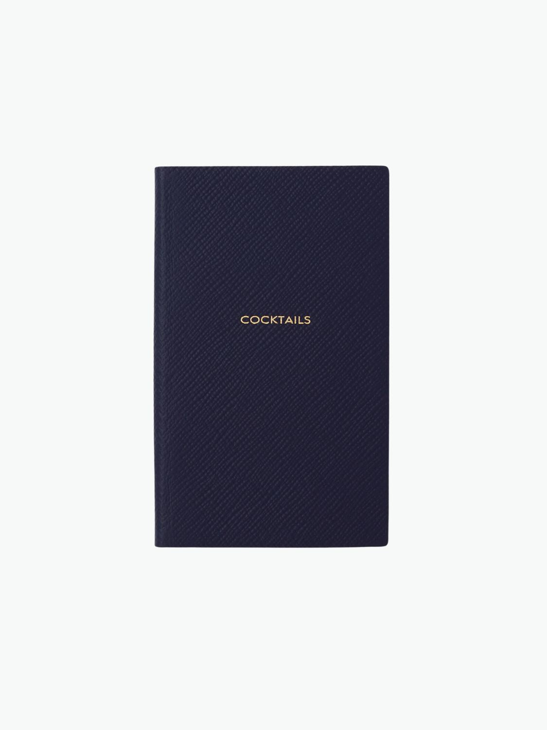 Το νέο Cocktails Pocket Leather Notebook Navy της Smythson θα σε βοηθήσει να δημιουργήσεις εύκολα και γρήγορα τα πιο νόστιμα cocktails. Περιλαμβάνει εικονογραφημένες συνταγές για κλασικά cocktails και ειδικές σελίδες για τη δημιουργία νέων συνταγών. Το δέσιμο του με φυσικό δέρμα Panama και η διασταυρωτή υφή του το καθιστούν ιδιαίτερα ευχάριστο, ανθεκτικό και ελαφρύ στο χέρι. Τα φύλλα του είναι κατασκευασμένα από χαρτί Featherweight, με γραμμές, ανοιχτό γαλάζιο χρώμα και χρυσές άκρες. Το βαθύ, navy χρώμα του με τις χρυσές λεπτομέρειες θα ταιριάξει μοναδικά με τα υπόλοιπα αξεσουάρ σου. Χάρις στο μικρό του μέγεθος μπορείς να το έχεις πάντοτε μαζί σου. Ιδανικό δώρο για κάθε mixologist.