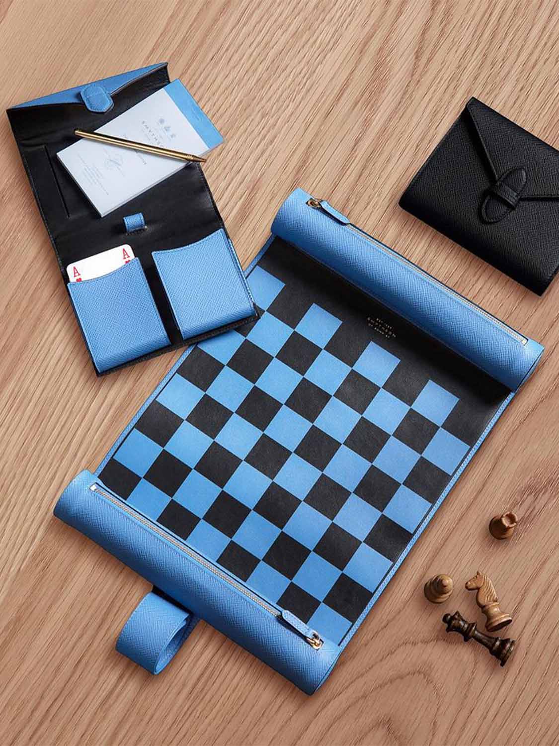 Είτε είστε σοβαρός παίκτης είτε βγάζετε μια τράπουλα για να χαλαρώσετε, το διπλό σετ τραπουλόχαρτων της Smythson είναι ένας όμορφος τρόπος για να απολαύσετε οποιοδήποτε παιχνίδι. Έρχεται συσκευασμένο και τακτοποιημένο μέσα σε μια γοητευτική θήκη ταξιδιού φιλοτεχνημένη από το χαρακτηριστικό δέρμα cross-grain της Smythson και χαραγμένη, με χρυσοτυπία το λογότυπο της ετικέτας. Τέλεια φορητό, αυτό το σετ είναι το ιδανικό μέγεθος για να μπει στη βαλίτσα σας για τις επερχόμενες διακοπές. Ανοίξτε το για να αποκαλύψετε δύο τράπουλες με επιχρυσωμένα φύλλα, ένα εύχρηστο σημειωματάριο και ένα μολύβι για τη διατήρηση του σκορ.