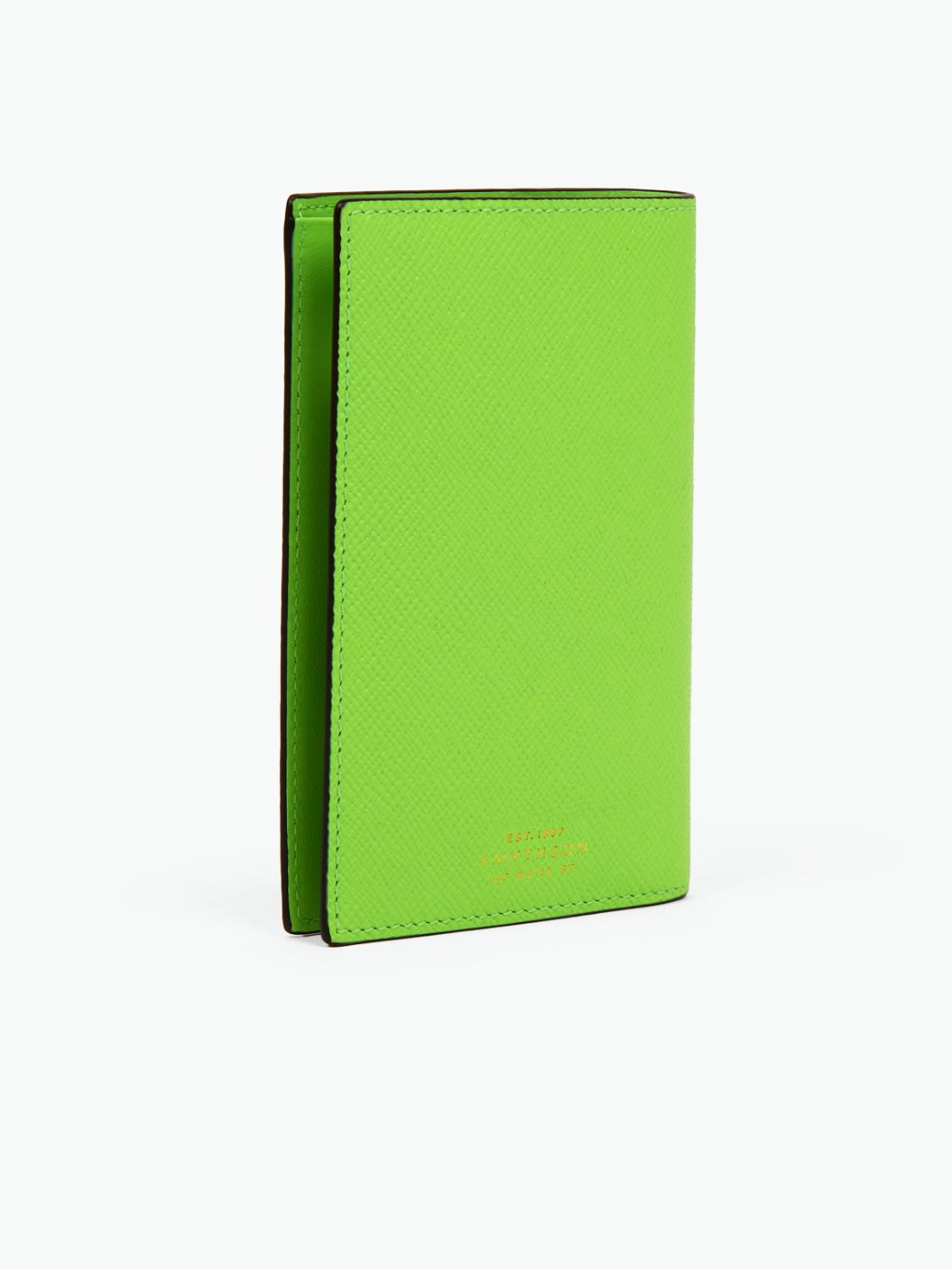 - Θήκη διαβατηρίου σε απόχρωση πράσινου μήλου με σχέδιο κερασιών εκτυπωμένο σε δέρμα με ανάγλυφη υφή.