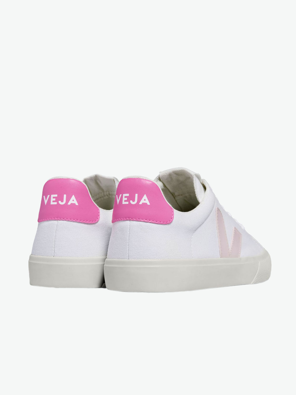 Αν αγαπάς το ροζ όσο εμείς τότε τα Campo Canvas White Petale Sari της Veja είναι τα καταλληλότερα παπούτσια για σένα. Kατασκευασμένα από φυσικό και ανακυκλωμένο καουτσούκ, βιολογικό βαμβάκι και ζαχαροκάλαμο όχι μόνο επιτρέπουν στο πόδι να αναπνέει, αλλά και το προστατεύουν από τα τραντάγματα και τις φθορές. Η άνετη εσωτερική τους σόλα παρέχει στο πόδι την απαραίτητη στήριξη, ελαστικότητα και άνεση που χρειάζεται. Το λευκό τους χρώμα εμπλουτίζεται με φωτεινές ροζ λεπτομέρειες που θα κάνουν κάθε outfit σου πιο ζωντανό, ροζ και παιχνιδιάρικο από ποτέ.